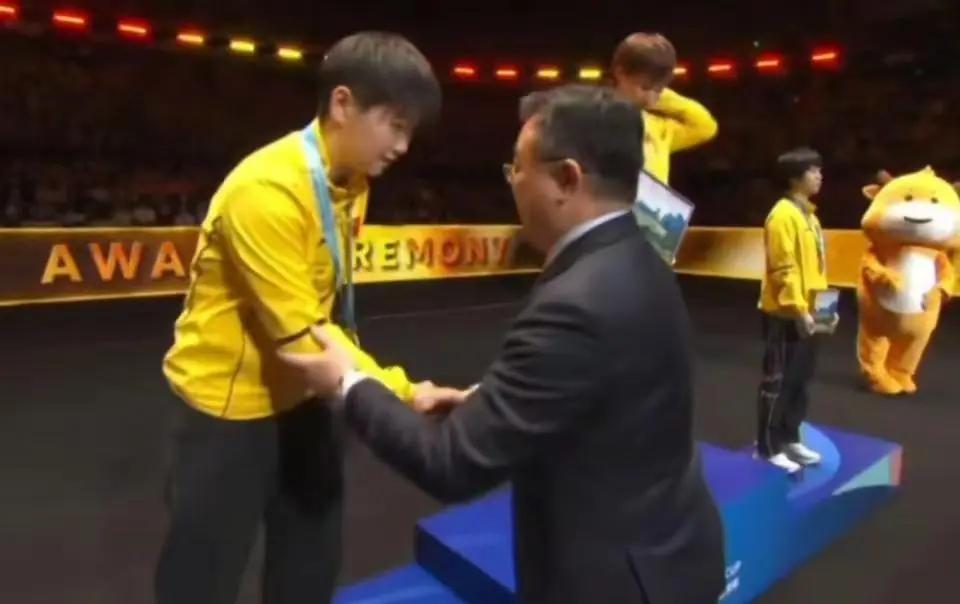 感谢莎莎又认识一位大佬。 颁奖是认真的,拥抱也是认真的。看看给莎莎颁奖的大佬。 图一虽然没得冠军领导依然单独问问莎莎可以拥抱吗?得到允许后,马上开心的上手。 图二,广东省体育局领导,一声莎莎,很亲切,握握手拍拍肩膀,这是对小辈的肯定和祝福。 图三,亚洲杯颁奖仪式,领导都走过去了,看着莎莎伸出大拇指。 这些都是时时直播!大佬们都忍不住的喜欢关注莎莎。