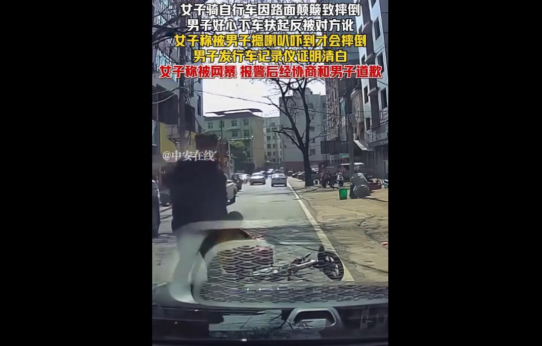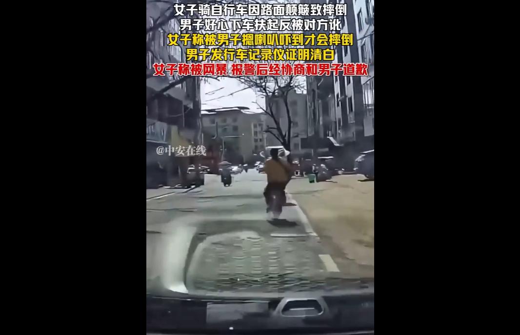 2月23日江西萍乡,一女子因路面颠簸骑车摔倒,却讹诈好心下车扶她的男子,称被其喇叭吓到。男子行车记录仪证清白后,女子因被网暴报警,最终向男子道歉。 最令人不齿的,从来不是女子骑车摔倒的意外,而是她摔倒后那颗扭曲、贪婪的心。 明明是自己骑行时未注意路面状况,因颠簸重心不稳摔倒,与路过的男子毫无关联,可她起身的第一反应,不是感谢可能出现的援手,而是盘算着如何“找个人背锅”、如何从中谋取私利。 当好心男子看到她摔倒,毫不犹豫下车搀扶,这份发自内心的善意,本该换来一句真诚的感谢,却沦为女子讹诈勒索的“把柄”,一句“被你喇叭吓到才摔倒”,轻飘飘的谎言,不仅污蔑了男子的善意,更是对“助人为乐”这一传统美德的公然践踏。 万幸的是,男子车上的行车记录仪,成为了戳破谎言的关键,也守住了这份珍贵的善意。 如果没有记录仪的清晰记录,男子恐怕百口莫辩,轻则被纠缠不休、被迫赔偿,重则背负“撞人逃逸”“冷漠无情”的骂名,陷入有理说不清的困境。 反观女子,在谎言被戳穿、真相公之于众后,没有丝毫悔改之意,没有主动向男子道歉认错,反而将自己置于“受害者”的位置,以“被网暴”为由报警求助,仿佛自己才是被冤枉的一方——这份颠倒黑白、厚颜无耻的姿态,比讹诈本身更令人愤怒。 近年来,类似“扶人反被讹”的事件时有发生:老人摔倒讹诈搀扶者、骑车意外摔倒讹诈路过司机、路人见义勇为却被反咬一口……这些事件中的讹诈者,大多抱着“反正没人能证明,讹成了就赚了,讹不成大不了道歉”的侥幸心理,肆意挥霍着全社会的善意,一点点摧毁着人与人之间的信任,让“助人为乐”变得小心翼翼、如履薄冰。