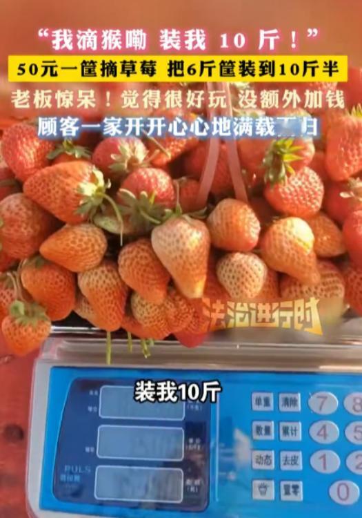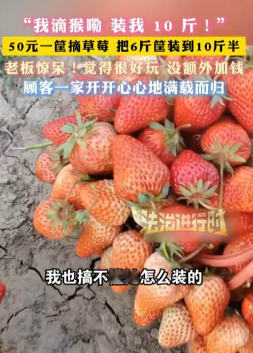 安徽临泉,一女子带着孩子们去摘草莓,老板说50元一篮子,万万没想到,女子竟在篮子中装了10斤草莓。在女子去结账时,老板都被惊呆了,这个篮子原本最多装6斤。 这段时间,正是安徽临泉草莓成熟的旺季,当地不少草莓园都迎来了采摘热潮,尤其是周末和闲暇时光,不少家长都会带着孩子,走进草莓大棚,体验亲手采摘的乐趣。 在进大棚之前,女子就问过老板采摘价格,老板笑着告知她,50元一篮子,篮子是园区统一提供的,随便装,只要能装进去、不散落,不管装多少,都只收50元。 女子听完,只是笑着点了点头,没有多说什么,心里却悄悄有了主意,她常年做家务、整理东西,最擅长的就是合理利用空间,想着既然老板这么说,那就尽量多装一些,不辜负这50元。 一开始,孩子们只是随手把草莓放进篮子里,摆放得杂乱无章,装了没多久,篮子就显得有些满了,孩子们还想着往里面塞,却怎么也塞不进去,还差点把草莓挤烂。 女子见状,笑着接过篮子,告诉孩子们,装草莓也是有技巧的,不能乱摆乱放,要合理利用每一寸空间,这样才能装得更多,还不会挤烂草莓。 说着,女子便动手整理起来,她先把个头小、形状规整的草莓,整齐地铺在篮子底部,作为底层铺垫,尽量摆得平整紧凑,不留空隙。 然后,再挑选个头中等的草莓,沿着篮子的边缘,一圈一圈往上摆,摆放的时候特意错开角度,让草莓之间的空隙最小化。遇到个头较大的草莓,她就小心翼翼地塞进缝隙里,既不会挤烂小草莓,又能充分利用多余的空间。 一旁其他采摘的游客,看到女子的摆放方式,都忍不住多看几眼,有人小声议论,说她也太会装了,这样下去,怕是要把篮子装爆,还有人笑着调侃,女子这是把做家务的技巧,用到了装草莓上。 就这样,不知不觉间,原本空荡荡的采摘篮,被女子一点点装满,而且越装越高,远远看上去,就像一座小小的草莓山。 孩子们看着满满一篮子的草莓,兴奋地拍手叫好,女子也笑着停下了手,轻轻晃动了一下篮子,确认草莓摆放稳固、不会散落,才带着孩子们,慢悠悠地走出草莓大棚,朝着结账处走去。 老板正坐在结账处忙活,看到女子带着孩子们走过来,一开始还笑着打招呼,可当他看到女子手里的篮子时,脸上的笑容瞬间僵住,眼睛瞪得圆圆的,当场就被惊呆了。 他从事草莓种植和采摘服务多年,园区的篮子能装多少草莓,他比谁都清楚,这款统一提供的篮子,就算是摆放得再紧凑,最多也只能装6斤,可女子手里的这一篮子,看着就沉甸甸的,明显超出了正常容量。 老板连忙起身,拿起电子秤,笑着让女子把篮子放在上面,想要称一称到底装了多少。当电子秤上的数字稳定下来时,老板更是惊得合不拢嘴——屏幕上清晰地显示着10斤整,比篮子正常的最大容量,整整多了4斤。 老板忍不住上下打量着女子,又看了看篮子里摆放得整整齐齐的草莓,眼里满是惊讶,一时之间竟不知道该说些什么。 惊讶过后,老板还是按照约定,只收了女子50元,没有多收一分钱,还笑着夸赞女子太会利用空间了。女子付了钱,提着满满一篮子10斤重的草莓,带着孩子们开开心心地离开了草莓园。 如今,临泉的草莓采摘依旧火热,50元一篮随便装的活动,也吸引着不少人前来,而女子装草莓的技巧,也在当地的采摘圈里悄悄传开。 其实最近这段时间,不少草莓园都有类似的亲民活动,既能让游客体验采摘乐趣,又能拓宽草莓的销路,实现双赢。对此,你们有什么看法,欢迎评论留言~