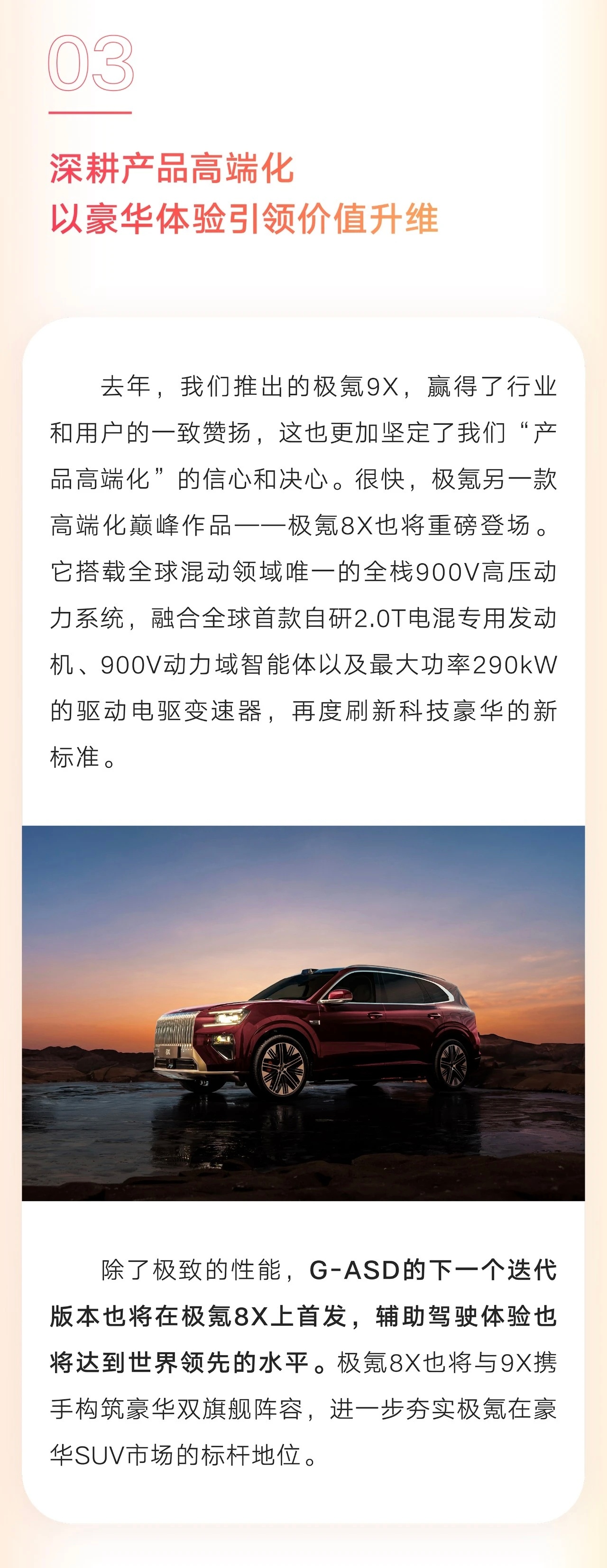 开工第一天,吉利就有大动作!吉利CEO淦家阅开工就宣布,2026年不搞内卷,主打技术普惠。高阶智驾千里浩瀚H7要全面下放,不光高端车有,领克、吉利银河更多车型都能用上。而且极氪8X将首发搭载新版G-ASD智能驾驶系统,直接扛起集团智驾天花板。简单说:吉利今年就是把高阶智驾普及到底,稳扎稳打,不卷价格卷真技术,这波很有看点。