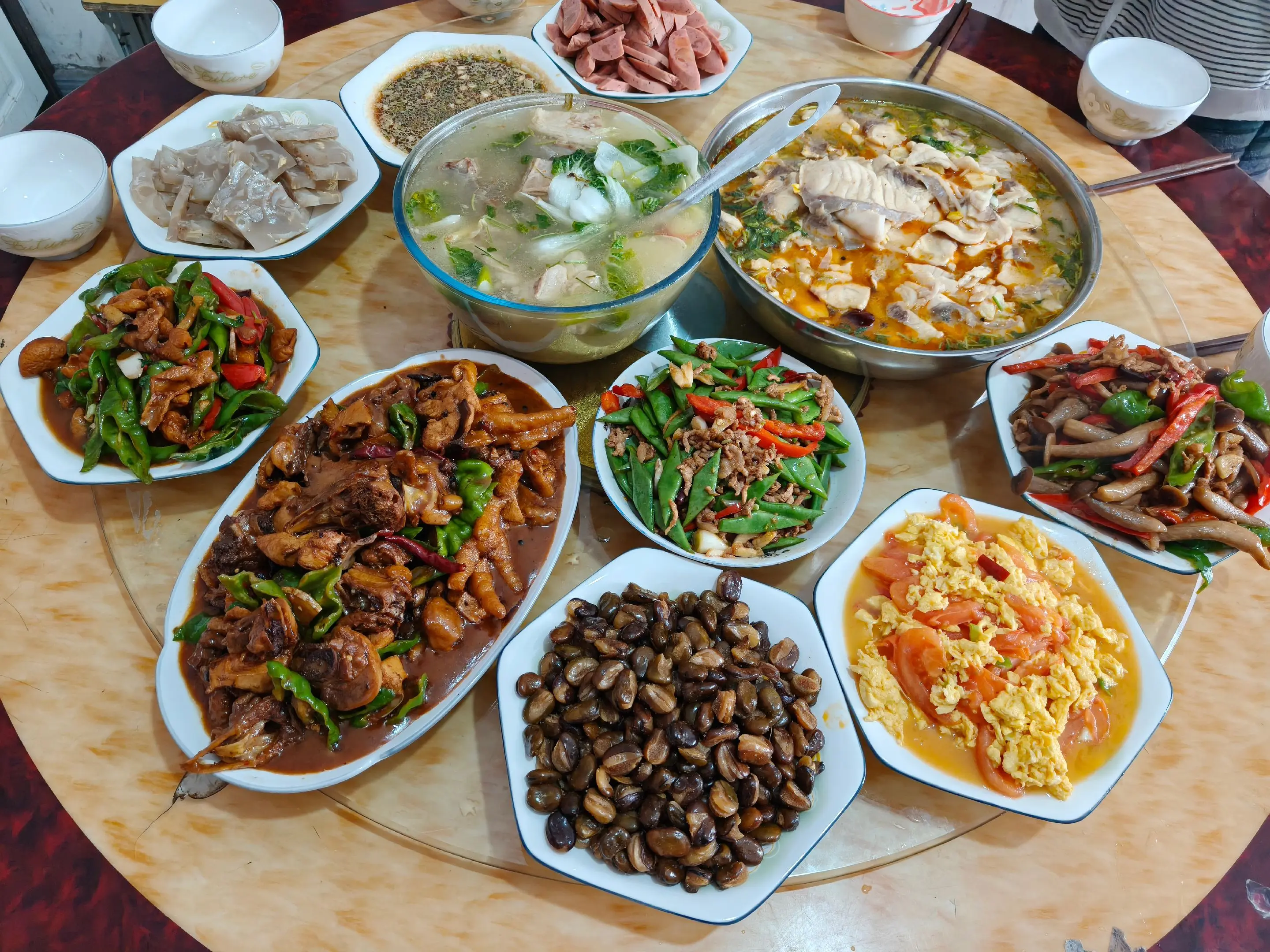 ✨救命!这桌家常菜也太香了吧!🤤红烧鸡块色泽诱人,番茄炒蛋酸甜开胃,还有鲜美的鱼汤暖到心~😋你最爱哪道菜?👇