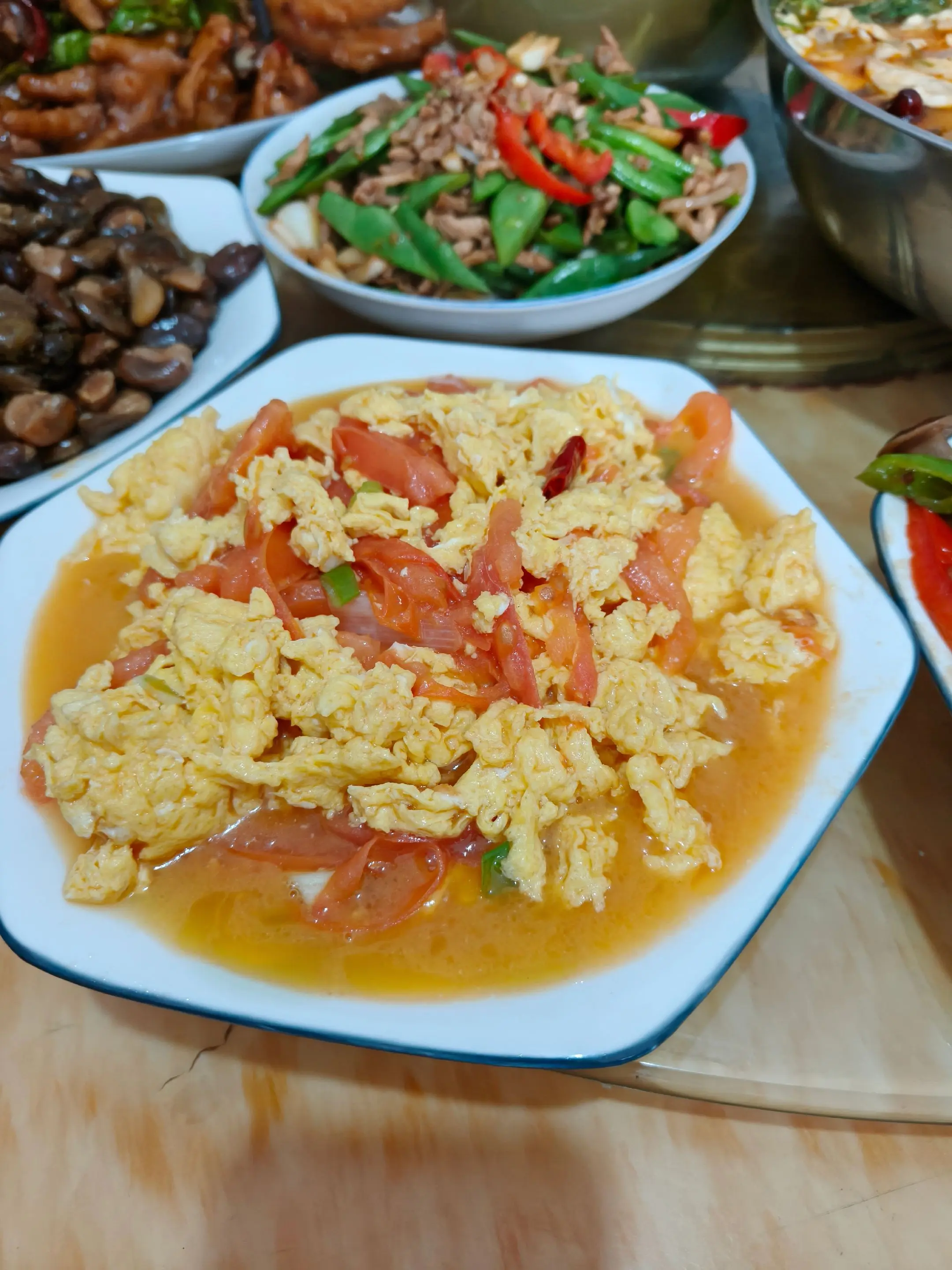 ✨救命!这桌家常菜也太香了吧!🤤红烧鸡块色泽诱人,番茄炒蛋酸甜开胃...