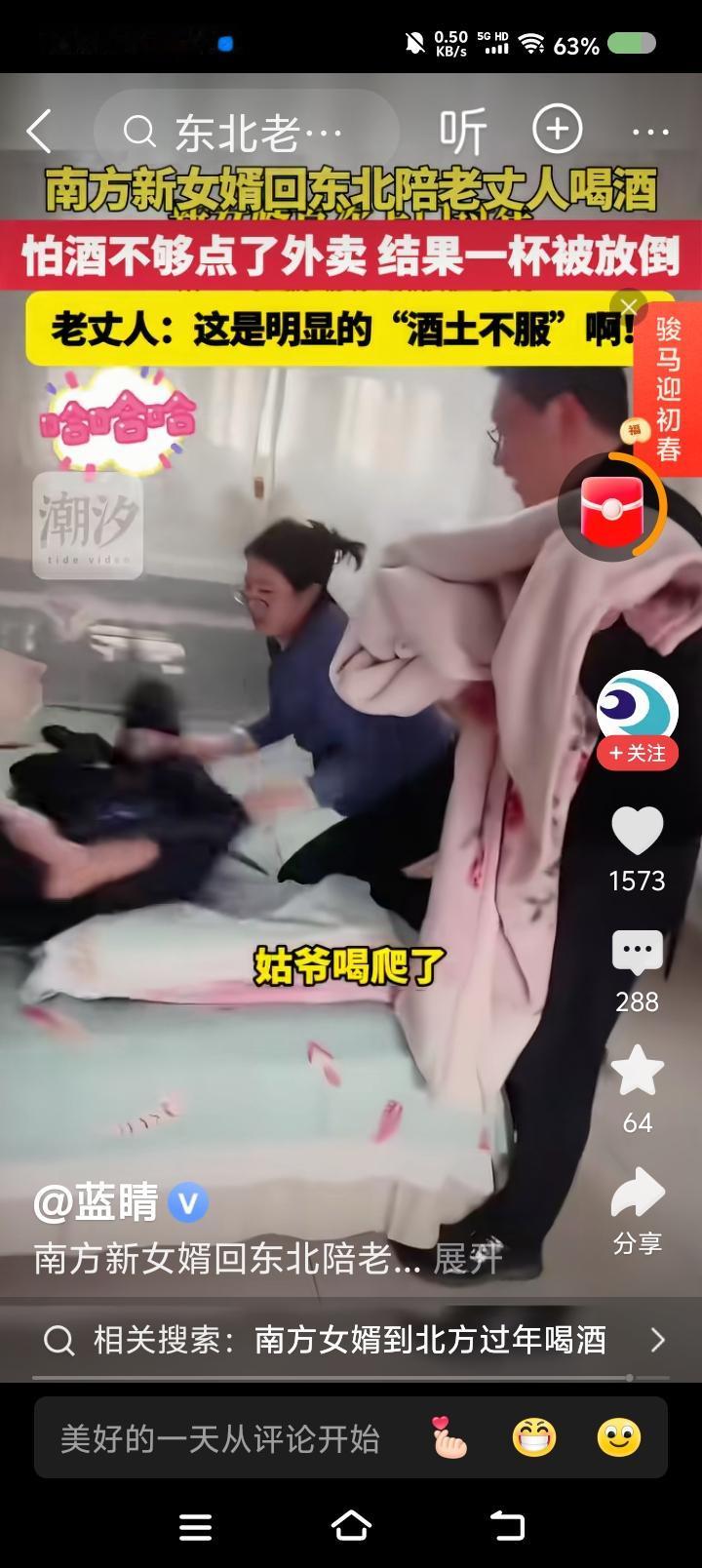 “一杯倒”女婿—— 据报道,一南方新女婿回东北媳妇娘家,想着酒不够又买了些。结果,“上了一个菜,一杯干倒了。”“还是高估自己了。” 点评: 一杯倒女婿?明显有套路。 得审。 什么老虎凳呀可乐呀美人计呀,来一遍。