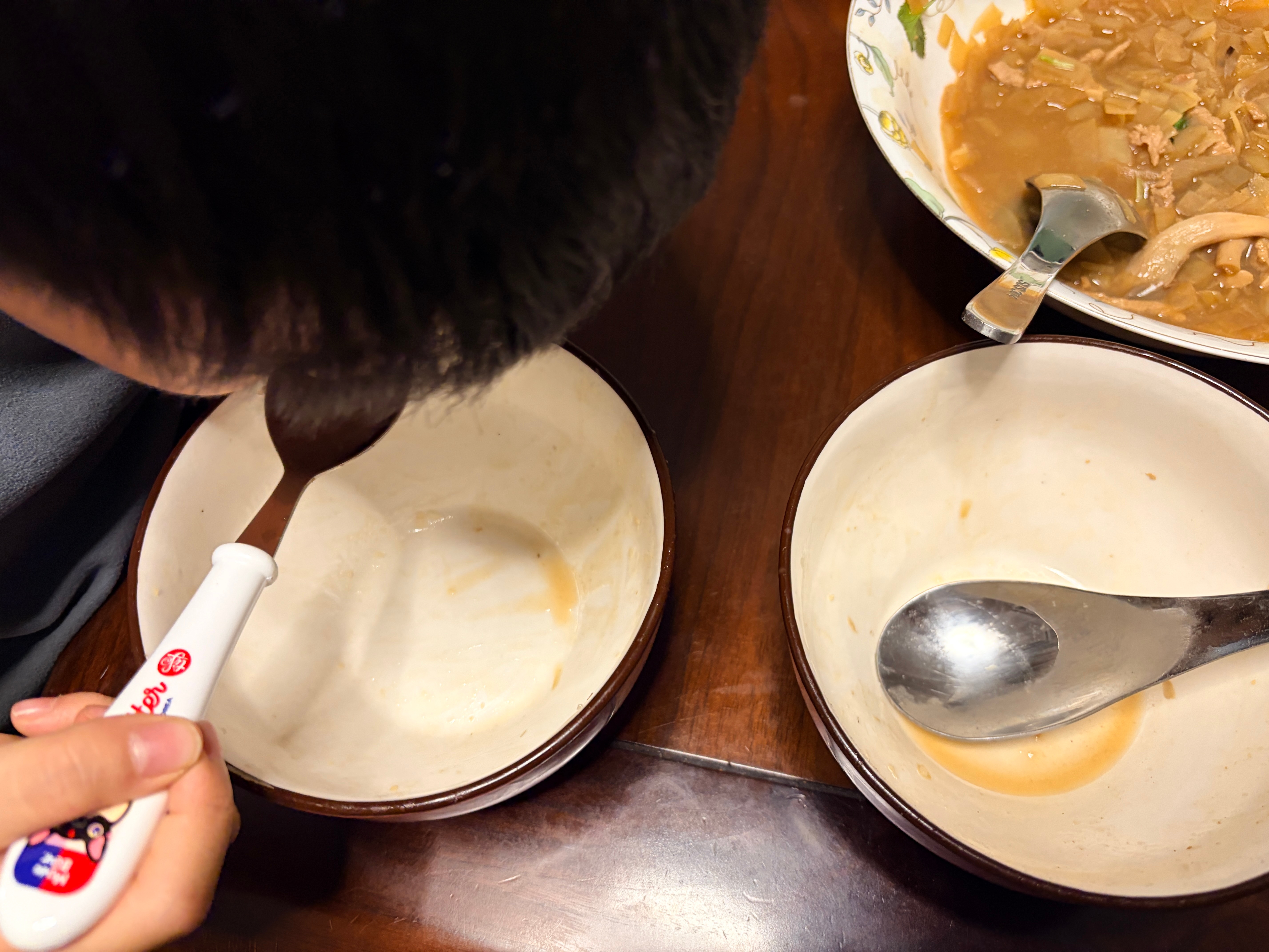 可能还是有点做饭天赋的,土豆片、黑猪肉丝、平菇,一锅炖,配上米饭,娃吃的干干净净