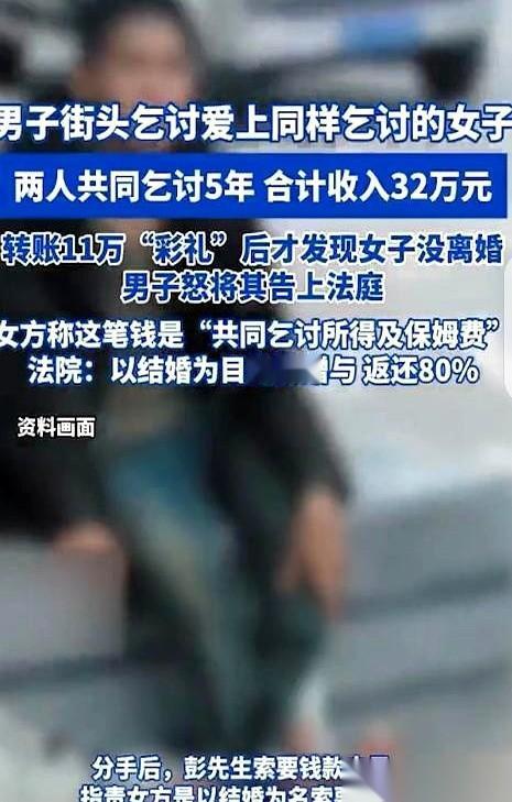 我跟你说个事儿,比我看的八点档还离谱。 俩乞丐,同居五年,联手讨了32万。 你没看错,三!十!二!万! 我当时就想,这得是什么样的丐帮精英,年度销冠啊? 男的离异,以为在街头碰到了同是天涯沦落人,想着搭伙过日子,有个伴儿。 女的也说自己离了,俩人就这么凑一块儿了。 五年啊,风里来雨里去的,感情应该挺深了吧? 男的动了结婚的念头,女的开口了:行啊,彩礼20万。 大哥也是个实在人,为了这个“家”,东拼西凑,真就给了11万多。 掏心掏肺,以为掏的是爱情,结果掏了个寂寞。 钱一到手,大哥才发现,好家伙! 人家根本没离婚,家里有老公的! 这五年,算什么?合伙创业?还是体验生活? 气得大哥把她告了,你猜她怎么说? 她说那11万是“共同乞讨所得”外加她的“保姆费”。 保姆费??? 我真的会谢,谁伺候谁啊这是?不都是趴地上一起上班的同事吗? 最后法院判了,让她退八万多。 你说这事儿闹的。 真的,有时候最锋利的刀子,不是来自敌人,而是来自你以为的枕边人。 尤其是在一无所有的时候,那点仅存的信任,被骗走,比钱没了还扎心。