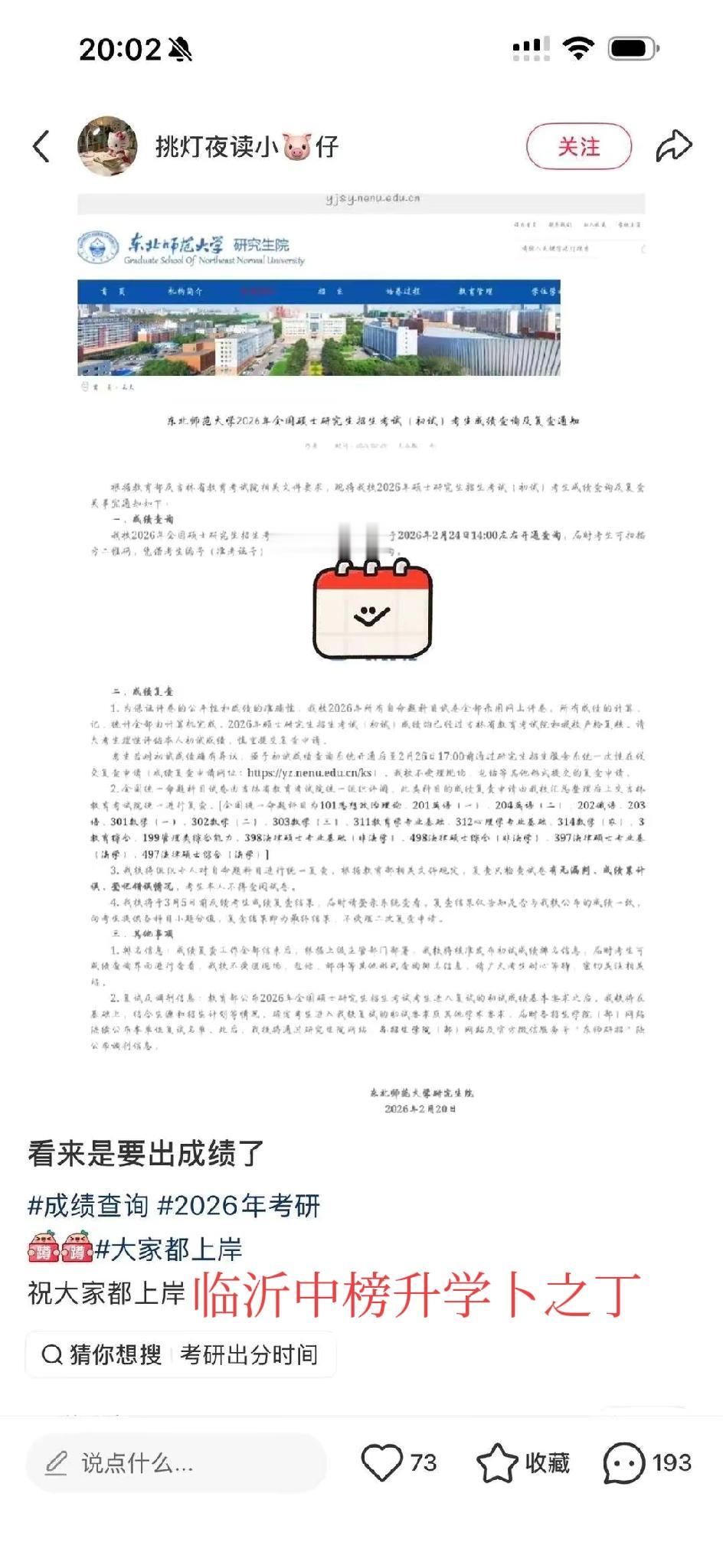 真没想到!考研成绩查询时间竟然上了热搜,没办法,很多考研的同学经历了长周期的点灯熬油,刻苦学习,十二月就考完了,又是一个漫长的等待,一直到现在。那种煎熬,没有经历过考研的人不会懂。希望有关部门尽量开放查询系统,也希望考生稍安勿躁,安心等待,祝2026考研的同学们都能有个好成绩,一顺百顺。欢迎大家留言文明交流!