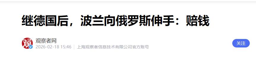 打了快四年,我一直以为俄罗斯人最恨的是乌克兰,再不济也是美国,结果民调一出来,所有人都傻眼了。第一名,居然是波兰。说真的,这哥们儿简直是反俄的“急先锋”,比谁都猛,战争一开打,国门大开,两百万乌克兰难民说收就收,管吃管住管医疗。那架势,真跟自己家人一样。 2026年初,俄罗斯列瓦达中心的一份民调报告,在莫斯科引起了不小的震动。 报告显示,超过六成的俄罗斯人认为,当前对国家威胁最大的,是邻国波兰。这个结果,把常年“霸榜”的美国和英国都甩在了身后。 其实,这股情绪的出现并非偶然,俄罗斯普通人对外部威胁的看法,已经发生了深刻的改变。 在这场冲突里,波兰的角色早已不是一个简单的物资中转站。华沙方面率先打破禁忌,向乌克兰提供了大量主战坦克和米格战斗机。 这些举动,在俄罗斯看来,已经完全越过了底线。今天的波兰,实际上已经成了乌克兰军队的大后方、装备补给线和情报枢纽。 这种介入,让莫斯科感受到了直接的压力。波兰不只是给装备,更重要的是它所展现出的决心。 在俄罗斯的视角里,正是波兰在全力托举着乌克兰的防线。如果没有华沙这个支点,整个战场的态势很可能完全不同。 波兰的所有行动,似乎就是用尽一切办法,让俄罗斯变得更弱。 而行动背后是实力的支撑。波兰的国防预算已经飙升到GDP的4.7%,这个数字冠绝北约。 大批新采购的美制“艾布拉姆斯”主战坦克和“阿帕奇”武装直升机,正源源不断地部署到东部边境。 同时,一个名为“东盾”的庞大防御工程正在加紧施工,沿着边境线修建起连片的军事工事。这种就在家门口的军事集结,带来的压迫感最为真实。 这让俄罗斯的“飞地”加里宁格勒的地位变得极其脆弱。波兰不断加强在苏瓦乌基走廊的军力部署,几乎对这片俄国领土形成了反向合围。 对俄罗斯来说,美国远在天边,但波兰是一个武装到牙齿、就守在门口的邻居。 华沙随时有能力切断加里宁格勒与俄罗斯本土的陆路联系。这种可能被随时“关门”的窒息感,比任何经济制裁都来得更具体。 其实,两国之间的不信任,根植于长达四百年的历史纠葛。从17世纪波兰军队一度占领克里姆林宫,到后来波兰被三次瓜分、国家不复存在。 俄罗斯普通民众对波兰的警惕感越来越强。很多人相信,波兰正试图利用眼下的机会,彻底改写东欧的地缘格局,重新成为区域的主导者。 在所有反对俄罗斯的国家里,波兰是态度最坚决、行动最靠前的一个。一旦华沙的目标达成,俄罗斯在东欧几百年来的传统影响力将不复存在。 正是这种对未来的深层忧虑,让两国关系几乎没有任何转圜的余地。 相比于远隔重洋的大国对抗,邻国之间的冲突往往更加尖锐。大国之间或许还能坐下来谈利益分割,而邻居之间争的,常常是关乎存亡的空间。 波兰的选择非常明确,将自己定位为北约对抗俄罗斯的最前沿,希望借此机会,一劳永逸地解决掉几百年来的心腹大患。 而俄罗斯社会,则用普遍的敌意,回应了波兰这种不留后路的选择。 和解,在当下看来,是一个遥不可及的词。这个结,恐怕需要几代人的时间去慢慢解开。 信息来源:《继德国后,波兰向俄罗斯伸手:赔钱》,观察者网,2026年2月18日。