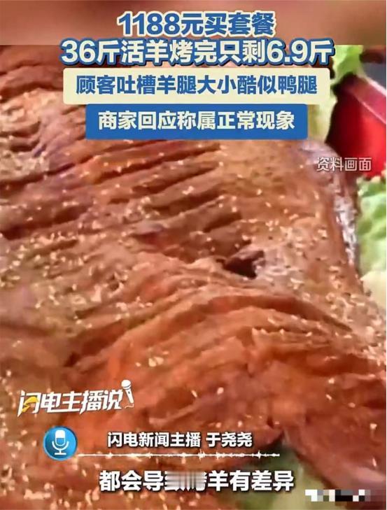 “吃相太难看了!”重庆,女子在除夕夜,带着全家人去一家烤全羊店聚餐,点了1188元的烤全羊套餐。现场称重是36斤,店家还当着王女士的面做了记号。谁知,烤全羊上桌后,女子发现不对劲了,桌上的烤全羊,个头又小又薄,肉干巴巴的,女子怀疑,店家动了手脚,偷梁换柱了。女子要求店家复称,店家说,羊肉烤完本来就会缩水,只剩四成很正常,没必要再称重。女子不能接受这个说法,双方吵了起来。女子一气之下报了警,民警赶到以后,店家被迫复称,结果,这只羊只有6.9斤。店家又说:喜欢运动的羊和不运动的羊,烤出来是不一样的。 “36斤的活羊能缩水成6.9斤?你当我是傻子吗!”重庆王女士在一家烤全羊店里拍案而起,嗓门压都压不住。 2026年除夕夜,王女士花1188元买了个年夜饭套餐,现场挑羊、亲眼称重、亲手在羊腿和尾巴上做了记号,结果端上桌的烤全羊又小又薄,几乎只剩一层皮贴着骨头。 王女士当场要求复秤,店家的反应那叫一个淡定,摆摆手说:“美女,你不懂,羊肉烤完本来就要缩水的,剩个四成很正常,不用称。” 王女士哪能信这个,坚持要称,双方就这么杠上了。好好的年夜饭变成吵架现场,最后她实在气不过,直接报了警。民警到了店里,店家这才不情不愿把羊端上秤——6.9斤。 这下店家急了,开始东拉西扯地找理由:“这羊跟人一样嘛,有的爱运动有的不爱运动,爱运动的羊肌肉结实,烤出来自然轻;再说了,这只羊烤得比较干,水分流失多,重量肯定不一样。” 一套说辞把民警都说愣了,见过编理由的,没见过编得这么离奇的。 按理说,36斤的活羊宰杀后去掉头蹄内脏,至少还能剩16到19斤白条肉;再经过烤制,水分和油脂流失,最终成品一般也有10斤左右。而这家店超过80%的缩水率实在让消费者无法接受。 好在市场监管局很快介入调查,然而结果更是让人哭笑不得。原来这家店从买进活羊到宰杀前,一直在给羊猛喂饲料和水,目的就是让羊称重时“虚胖”。 王女士那36斤里,大部分都是草料和水,等羊杀了烤了,肚子里那些东西没了,重量可不就哗哗往下掉?这下店家口中各式各样的说辞,彻底成了笑话。 最终,市场监管部门给了店家“退一赔三”的处罚,算是给王女士一个交代。但这事说到底,不只是赔多少钱的问题。 试想一下,大年三十一家人高高兴兴出门吃饭,结果被当傻子耍,换谁心里能舒服?那些歪理一套一套的,糊弄得了自己,糊弄不了秤,更糊弄不了越来越清醒的消费者。 对此你有什么看法?欢迎在评论区留言讨论。注水羊 诚信年夜饭 信息来源: 闪电新闻 文|墨海 编辑|史叔