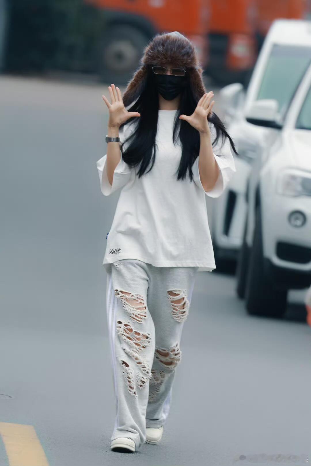 虞书欣白T牛仔裤虞书欣今日穿搭白T+破洞运动裤,她的横店时装周太好看了。虞书欣破