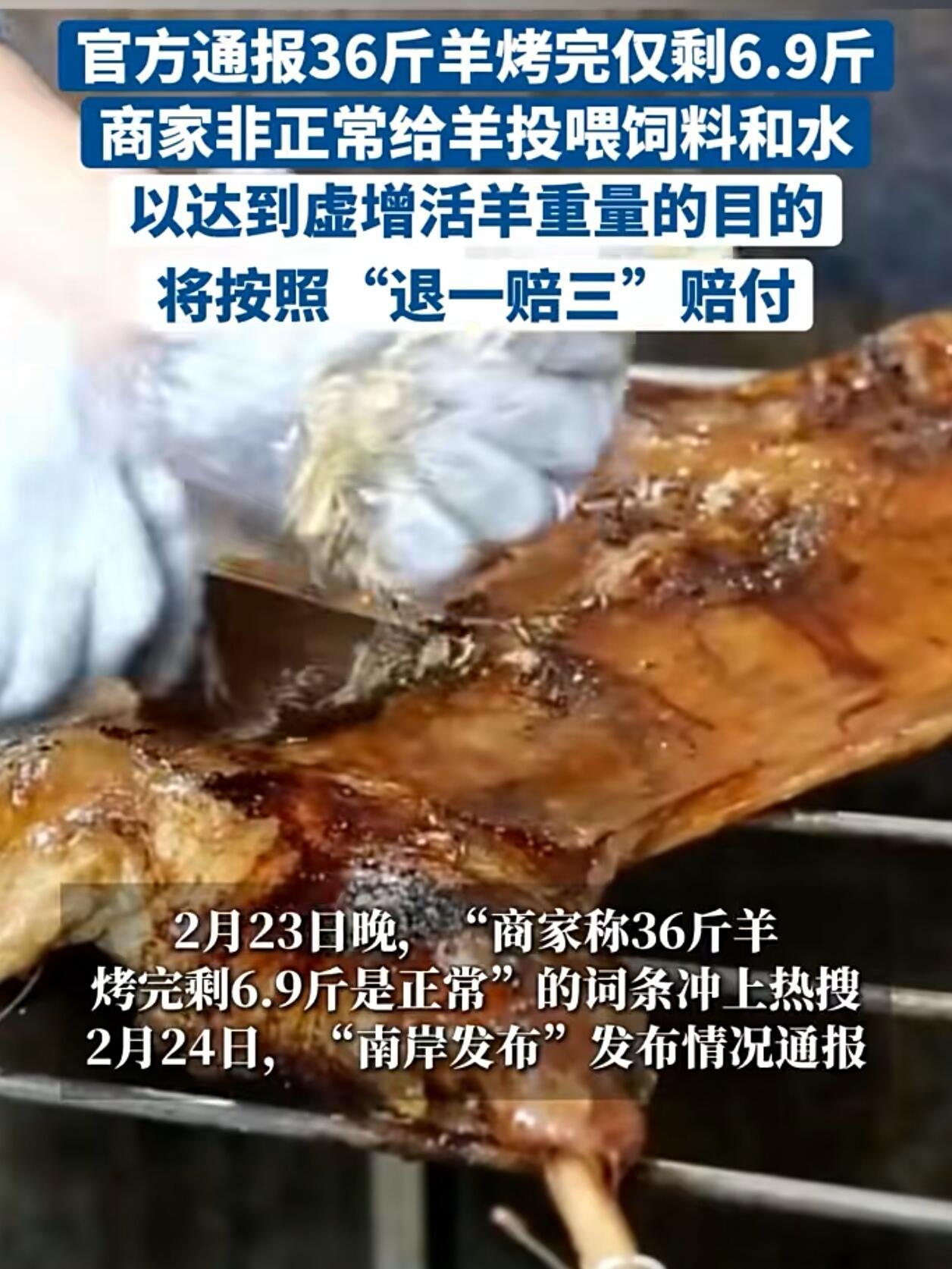 重庆市南岸区市场监督管理局最近就“大草原烤全羊店缩水事件”做出回应。这事儿在网上闹得挺大,有消费者投诉说,自己买了36斤的活羊,烤完竟然只剩下6.9斤,缩水也太严重了。 调查发现,这家店在宰羊前,故意给羊喂大量的玉米、干草和水,就是为了让羊的体重虚增,好多卖钱。这种做法明显是欺诈,严重侵犯了消费者的利益。虽然活羊在正常饲养过程中体重也会增加,但像这样短时间内靠非正常手段让羊“虚胖”,实在太不合理。消费者花钱是想买实实在在的羊肉,而不是这种掺了水分的“假货”。 这种行为不仅让消费者亏了钱,还破坏了市场的公平竞争环境。现在,市场监管部门已经介入调查,后续会依法处理。网友们都炸锅了,纷纷表示这种骗人的行为不能忍。 我觉得,对这种商家必须严惩。首先,应该按照相关法律进行罚款,数额要足够大,起到震慑作用。其次,停业整顿是必须的,甚至可以考虑吊销经营许可,让他们不能再继续坑人。另外,还要公开曝光,让消费者都知道这家店的问题,避免更多人上当。最重要的是,监管部门要加大抽查和监管力度,从源头上减少这类欺诈行为的发生。 总之,对这种不讲诚信、故意坑人的商家,绝不能手软,必须让他们付出代价,保护消费者的合法权益,维护市场的公平和秩序。做电工的出路在哪里?