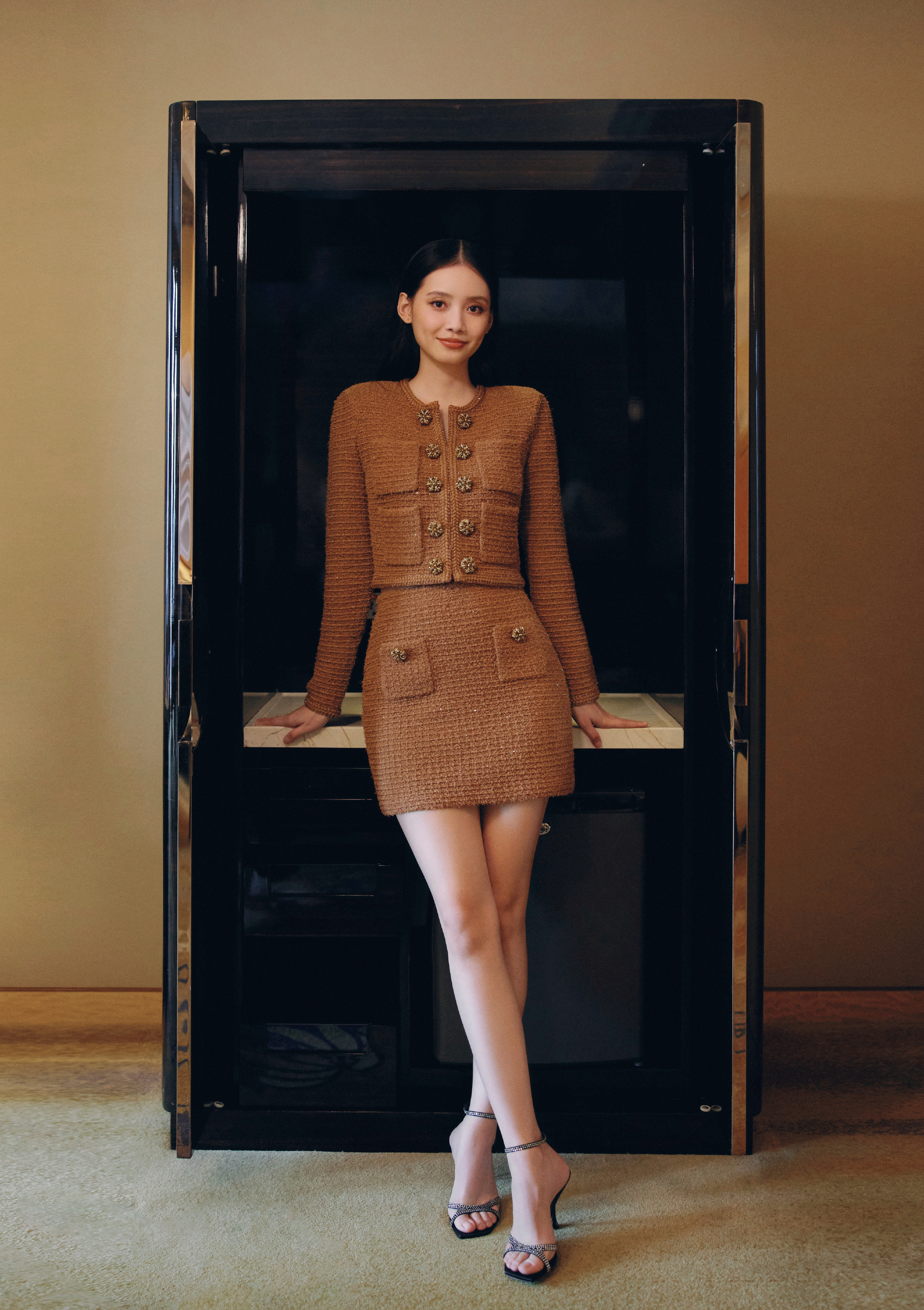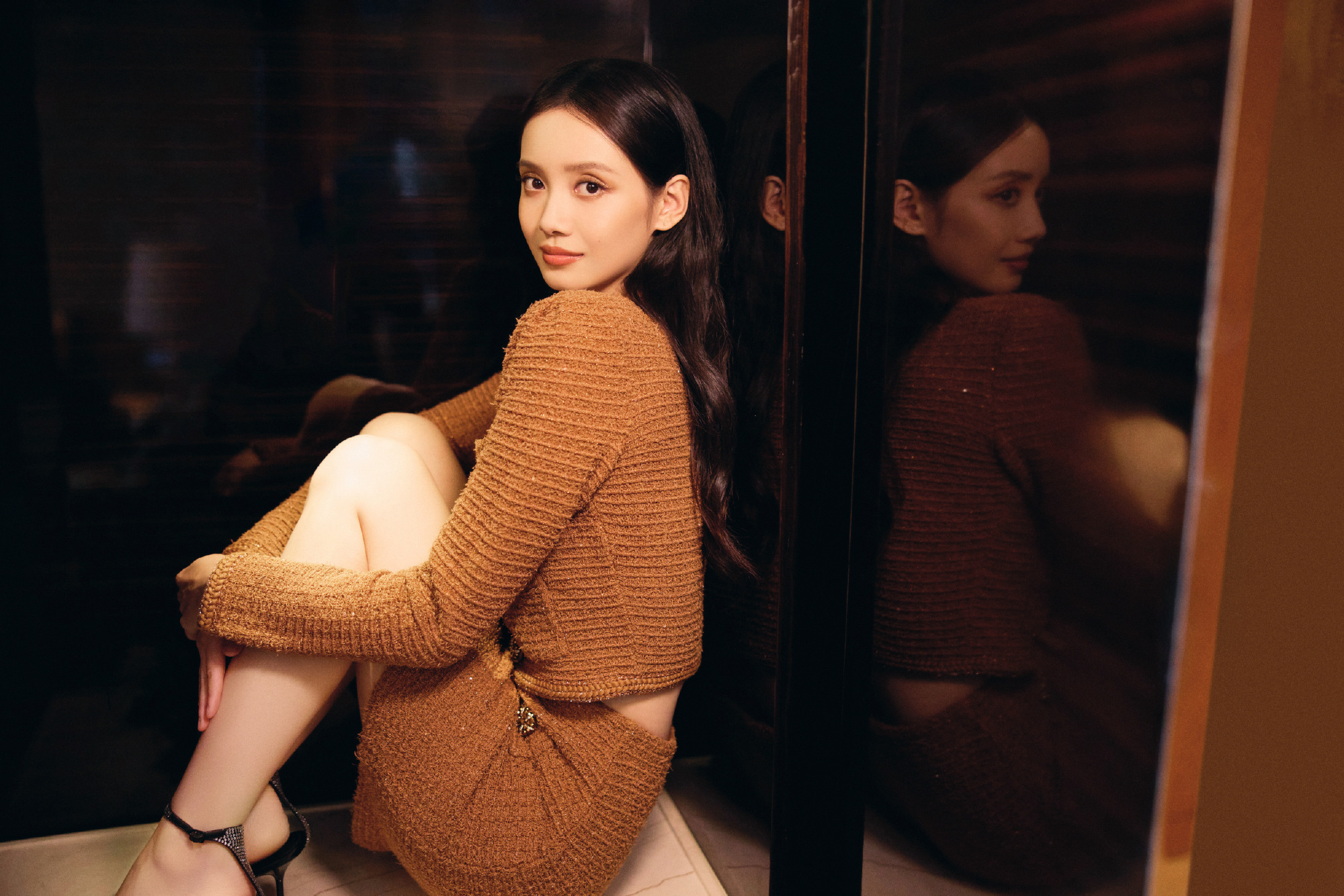 孙伊涵,温柔小香风穿搭,又长又直美腿特别吸睛。孙伊涵
