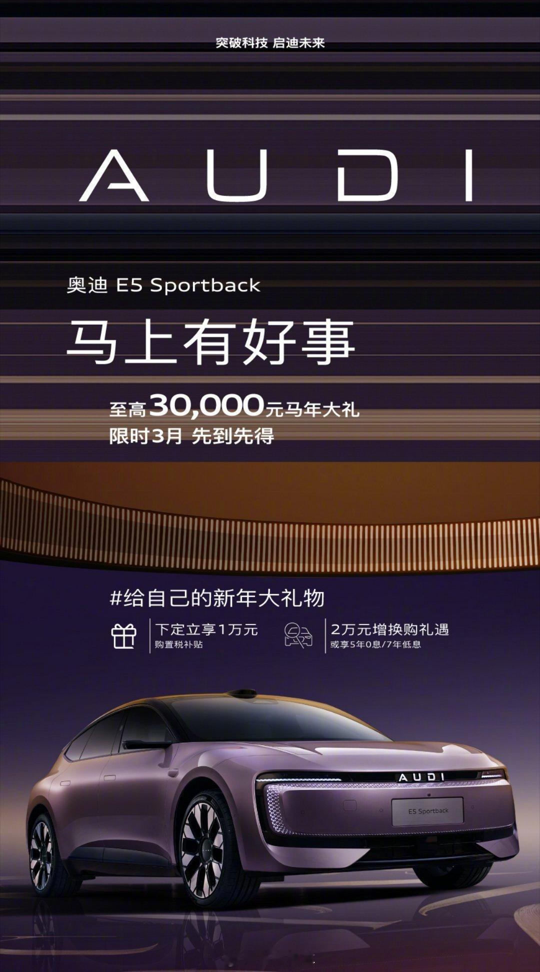 马年一开年,奥迪E5 Sportback价格就来了一波实在的,入门20.59万,quattro四驱23.99万。车就不用多说了吧,上市就拿多项年度车大奖,实力靠谱。搭配Momenta智驾、豆包AI车机,800V平台+100度电池,续航快充都够用,德系驾驶质感,这波可以奥迪E5开年抢先优惠20.59万
