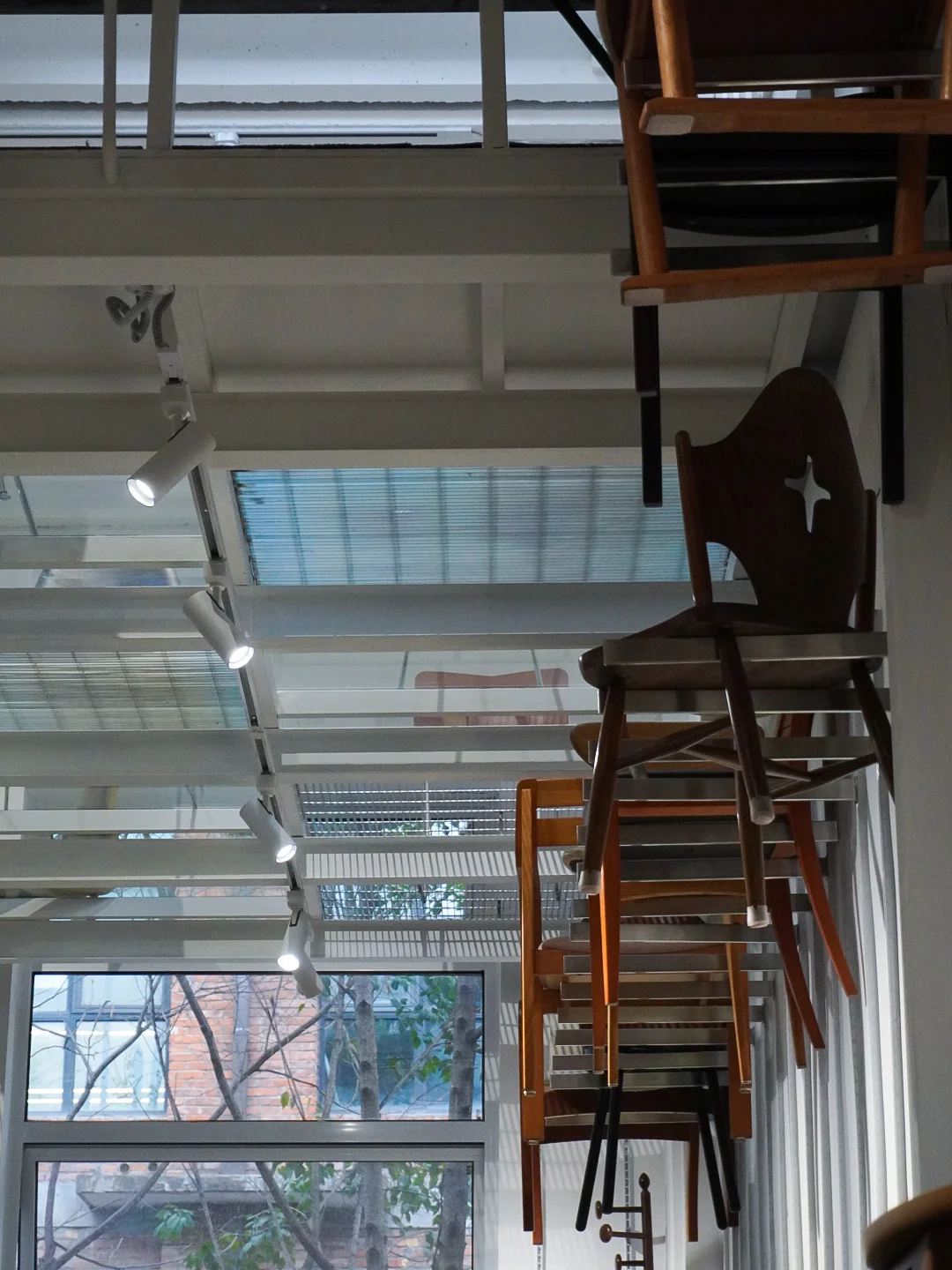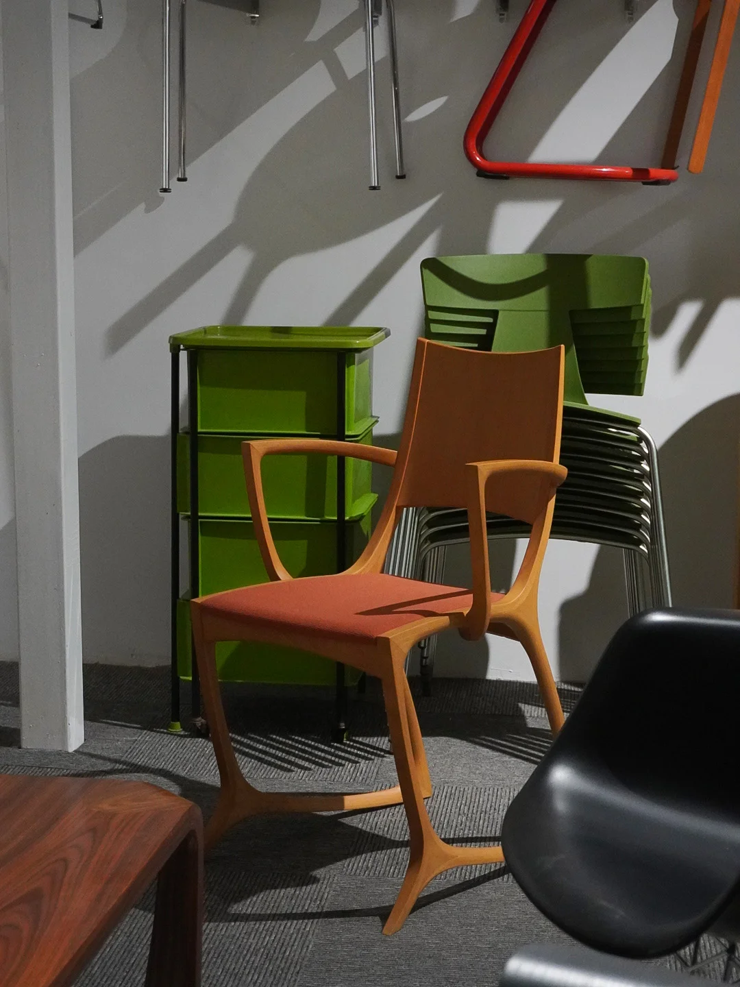 想了好久的一家中古家居店 趁着假期就马不停蹄地来见了 就算冒着大雨 也挡不住看到漂亮空间物件的美丽心情 暗调的天气里有种岁月划过潮湿 空气附着之上的美感在老时钟的滴答声里 走进透明的旋转回廊 仿佛踏足另一个年代空间 不同的搭配造型,领略了除认知外更特别的设计 有神似Artek感觉的Tendo 办公椅 被天童木工和LE STANZE的loop椅所折服 - 如果非要问我学到了什么那大概就是如何填满整面白墙 答案是——用椅子们