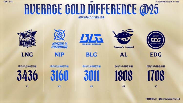 1.图一是官方直播流给出的战队经济25分钟经济差,其中LNG遥遥领先位列第一,NIP与BLG分别位列第二与第三