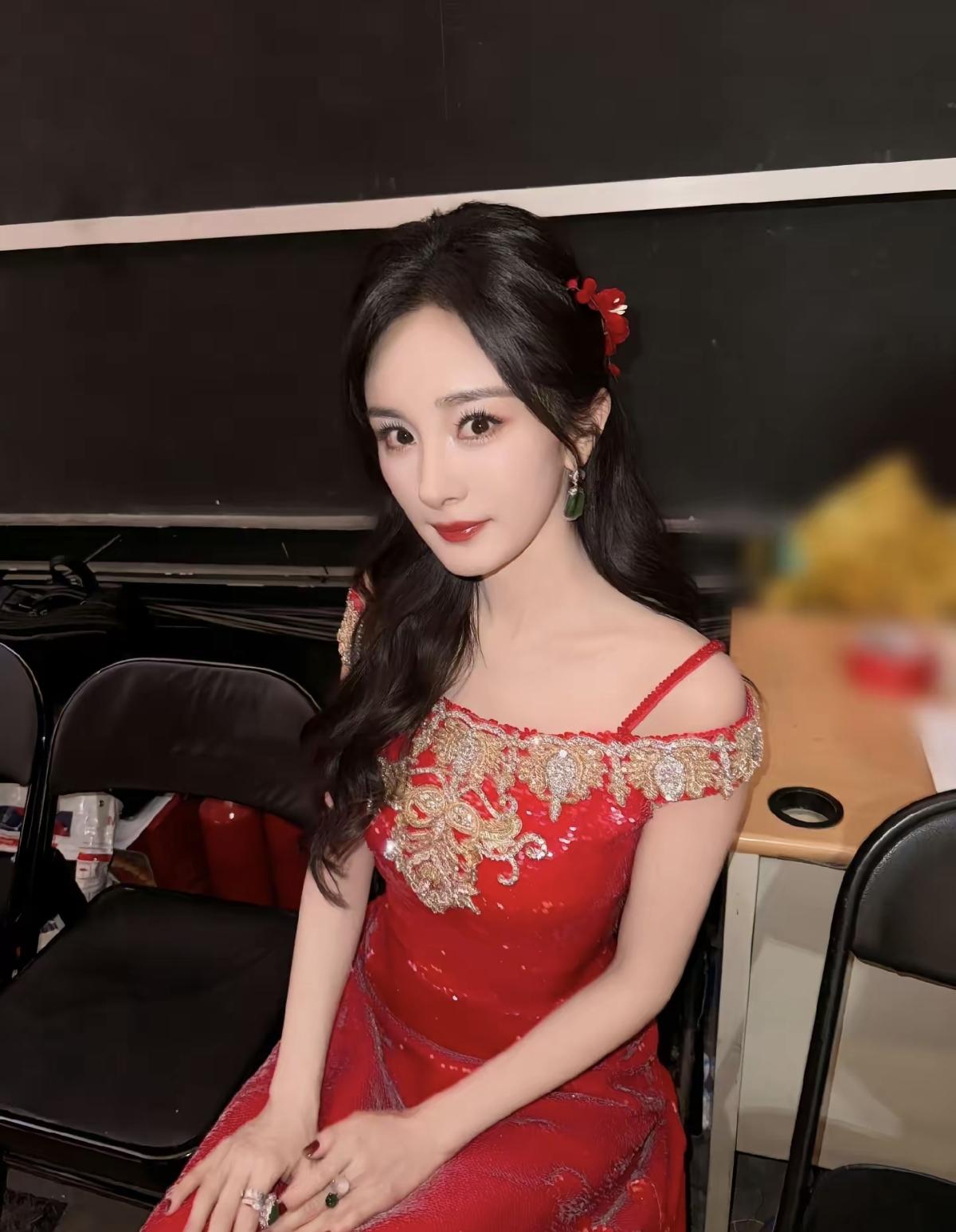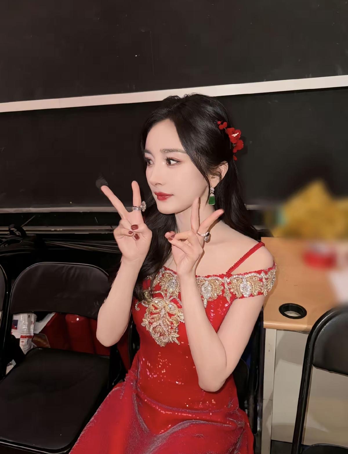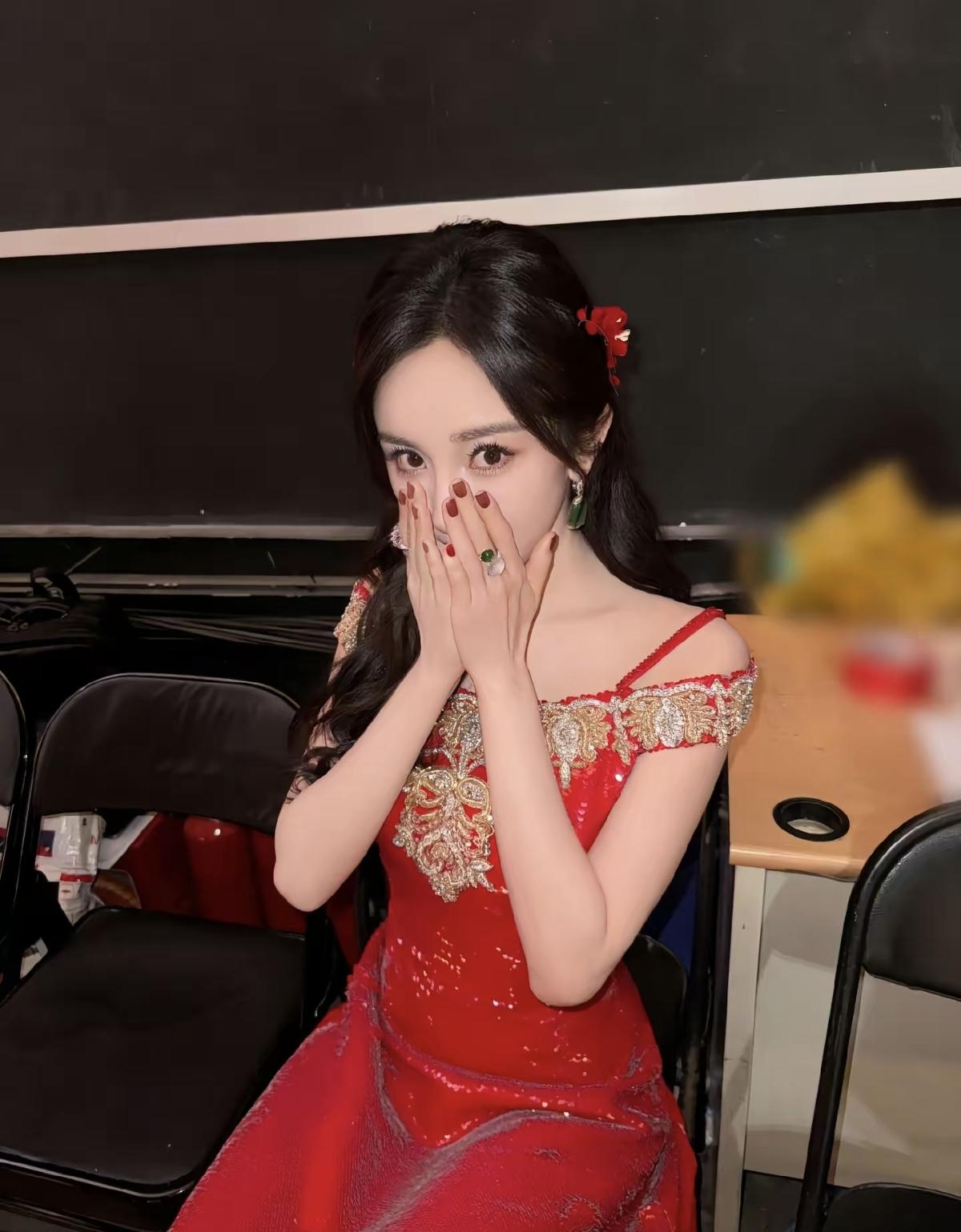 杨幂的春晚后台限定可爱,红裙与红妆,把红火与温柔都穿在了身上[比心]不止舞台上闪