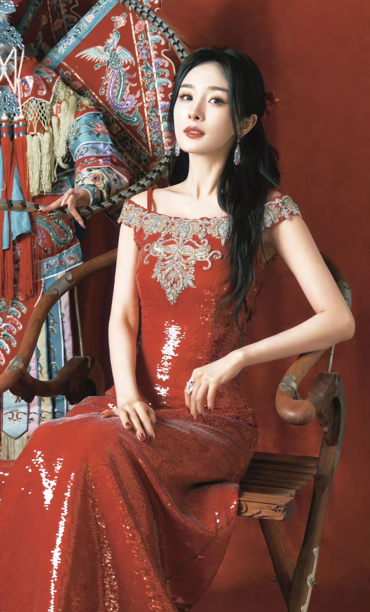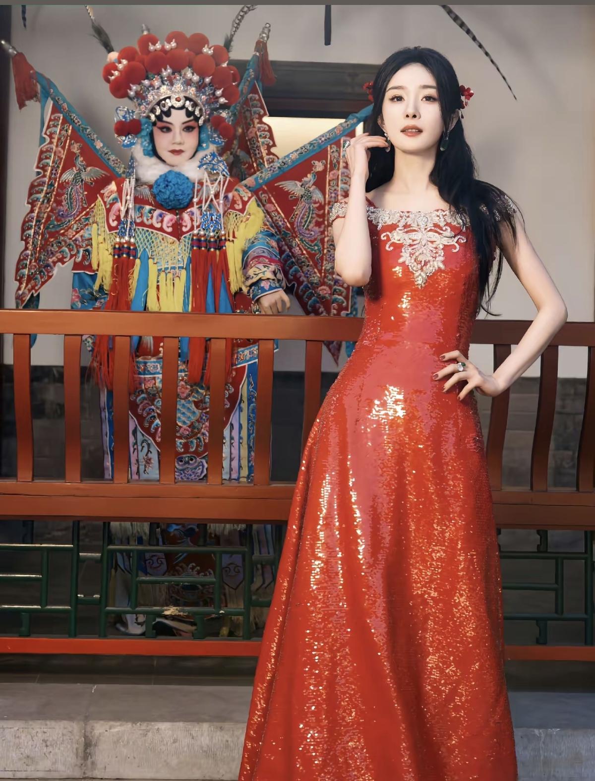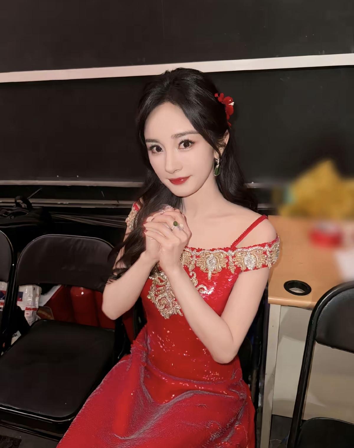 杨幂的春晚后台限定可爱,红裙与红妆,把红火与温柔都穿在了身上[比心]不止舞台上闪