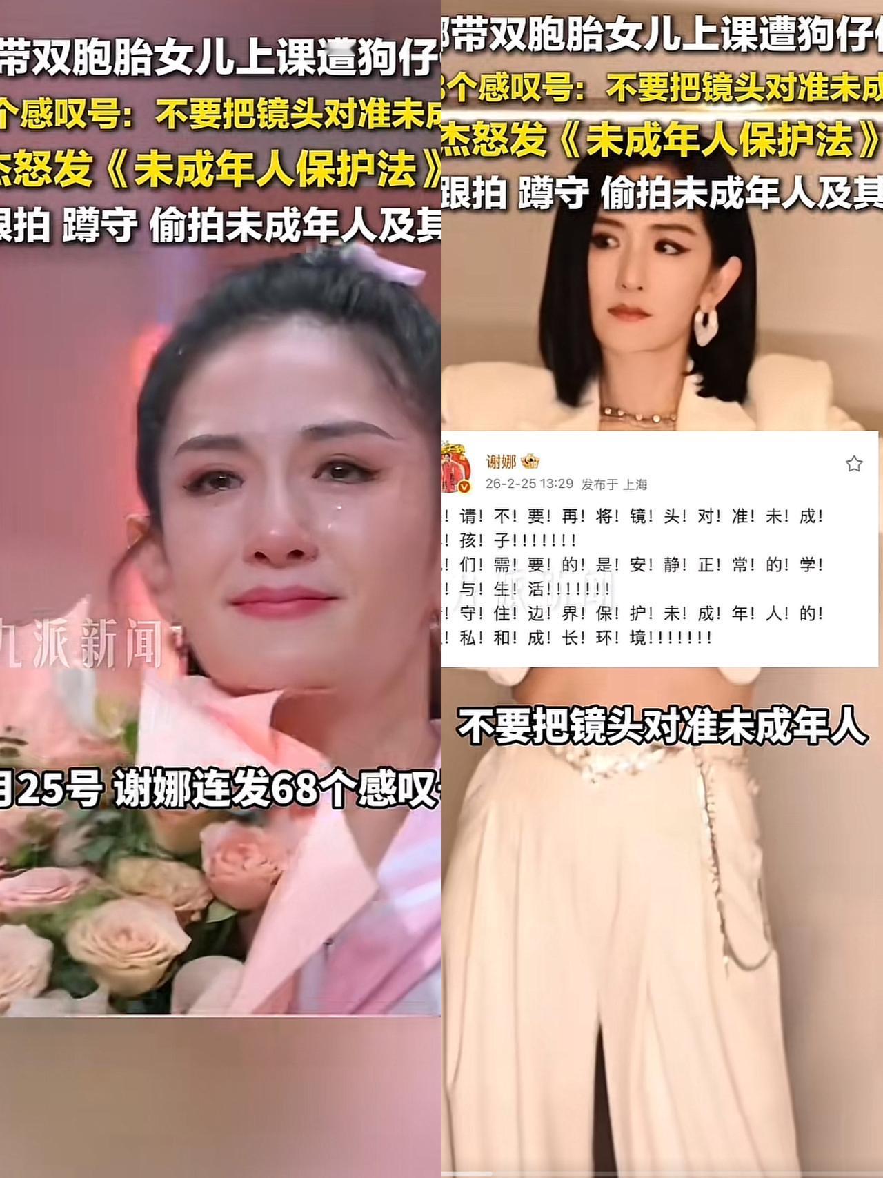 谢娜 之所以这么生气, 不是因为狗仔曝光了孩子的正脸,而是暴露了孩子的全部行程。 上课地点、出行路线、日常作息全被曝光,这哪里是偶遇,分明是刻意蹲守、恶意跟踪。 谢娜和张杰都是高关注度艺人,孩子本就容易被盯上,这些信息一旦落到坏人手里,后果不堪设想。 换作任何一个父母,看到自家娃被这样盯着、跟着,都会瞬间炸毛。 谢娜的愤怒,是妈妈护崽的本能;张杰立刻发声力挺,是一家人最硬的底气。 公众人物可以被关注,但孩子不该成为流量牺牲品,他们有权拥有安静、安全的童年。 身为父母,看到自己的孩子被这样盯着,跟踪,我想谁都会炸。