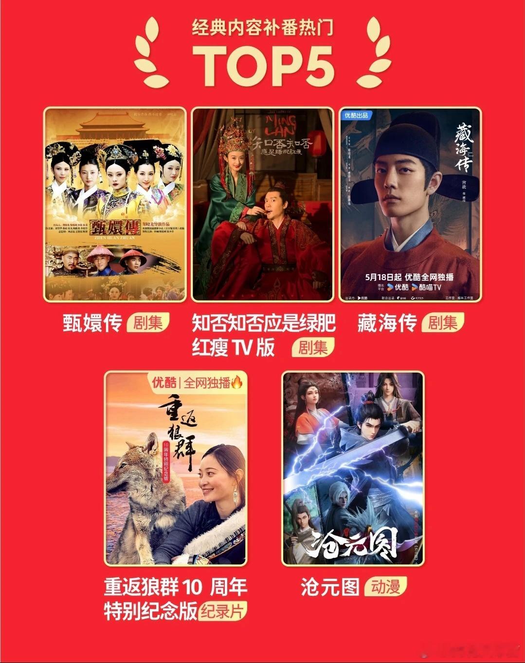 优酷春节数据报告——赵丽颖《知否》上榜经典内容补番热门TOP5!