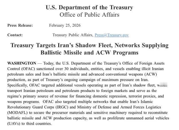 🇺🇸🇮🇷 特朗普政府的财政部对30多家为德黑兰石油销售、弹道导弹和武器项目提供资金支持的伊朗企业实施了制裁。 伊朗伊斯兰革命卫队(IRGC)和伊朗国防部(MODAFL)的网络也遭受了重创。 制裁仍然是美国最强大的武器之一,但我认为它们不足以对抗这个政权。 来源:@sentdefender 🇺🇸🇮🇷 Trump's Treasury slapped sanctions on over 30 Iranian players who were fueling Tehran's oil sales, ballistic missiles, and weapons programs. IRGC and MODAFL networks got hit hard, too. Sanctions continue to be one of America's most powerful weapons, but I don't think they'll be enough against this regime Source: @sentdefender