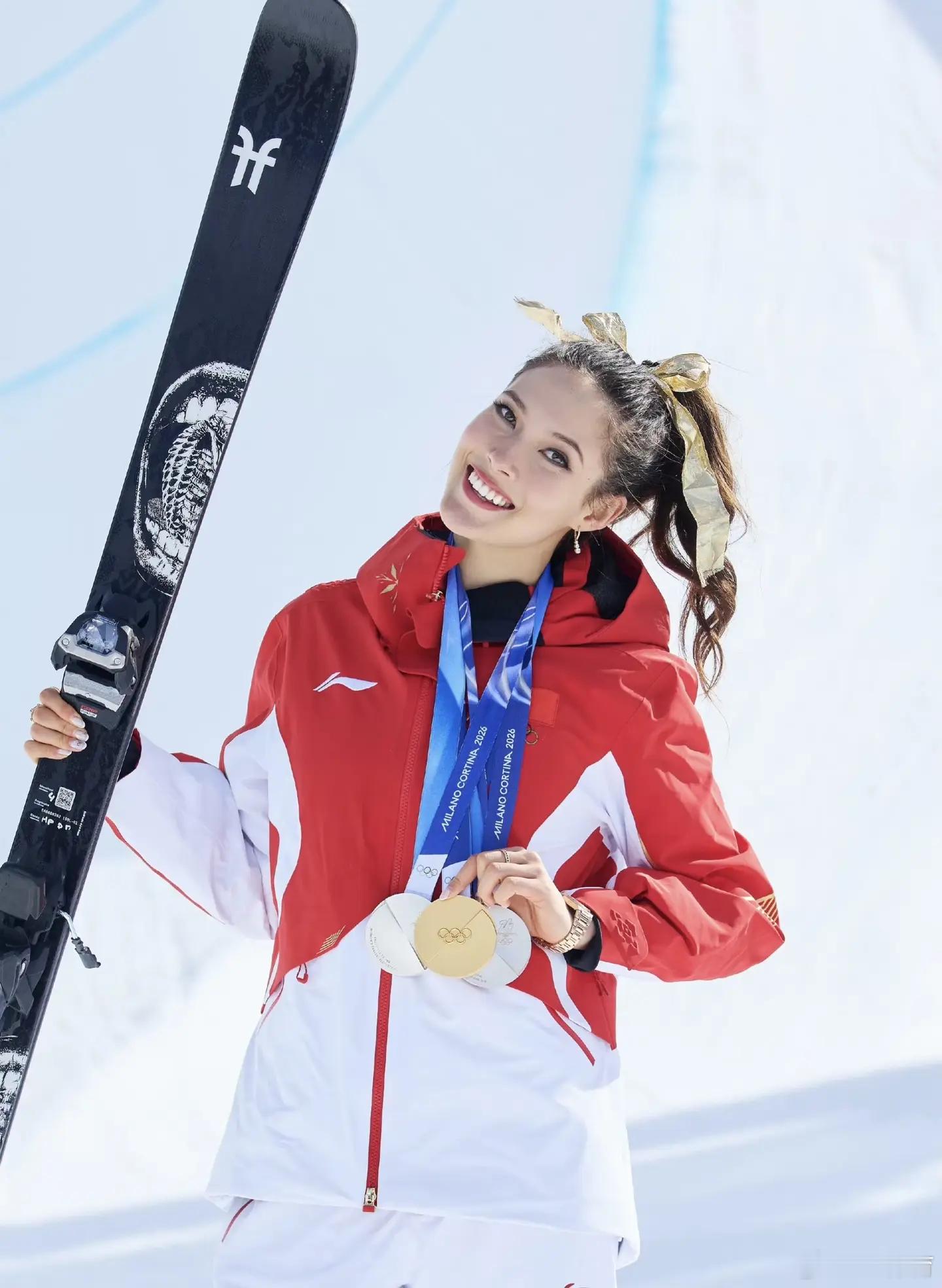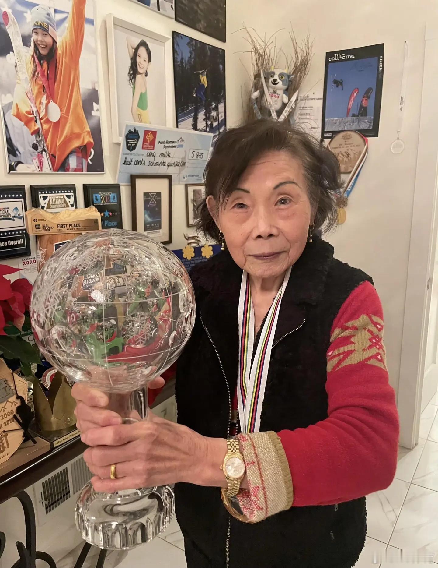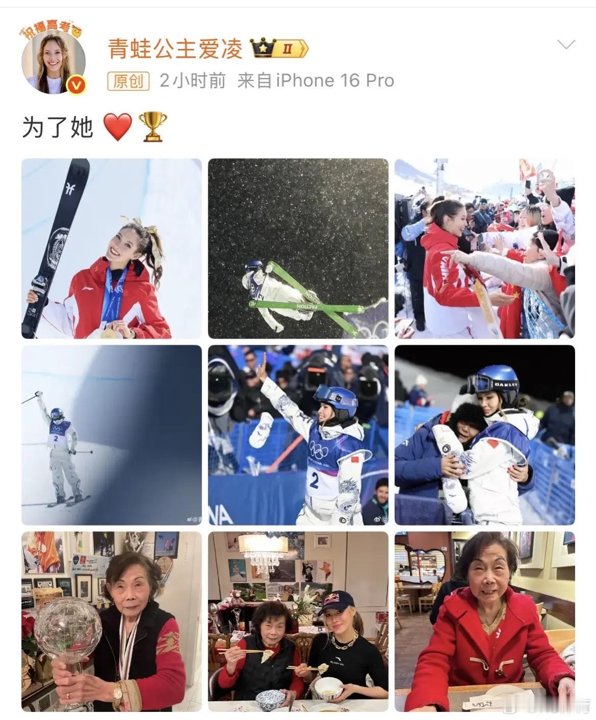 谷爱凌晒照配文为了她她把金牌举向天空,因为最想拥抱的人在那里。每一次腾空,都是为了她;每一次落地,都是爱的回响。