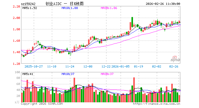 2月26日,截止午间收盘,创业板人工智能ETF大成(159242)涨1.89%,报1.939元,成交额4399.87万元。创业板人工智能ETF大成(159242)重仓股方面,中际旭创截止午盘涨0.34%,新易盛涨0.58%,天孚通信涨6.91%,蓝色光标涨0.22%,协创数据跌1.14%,同花顺跌1.80%,润和软件跌0.14%,北京君正跌1.20%,润泽科技涨17.97%,昆仑万维跌2.00%。