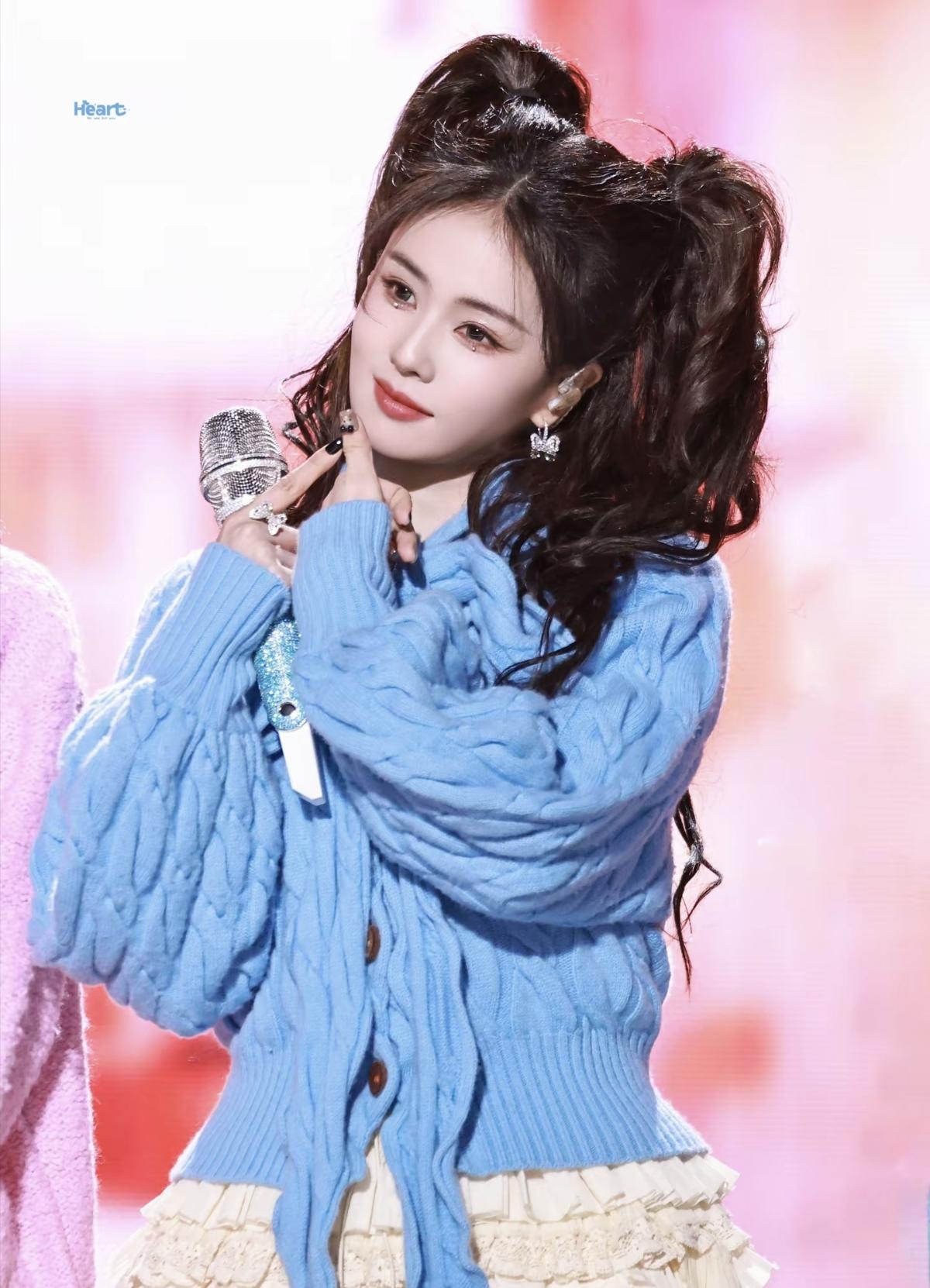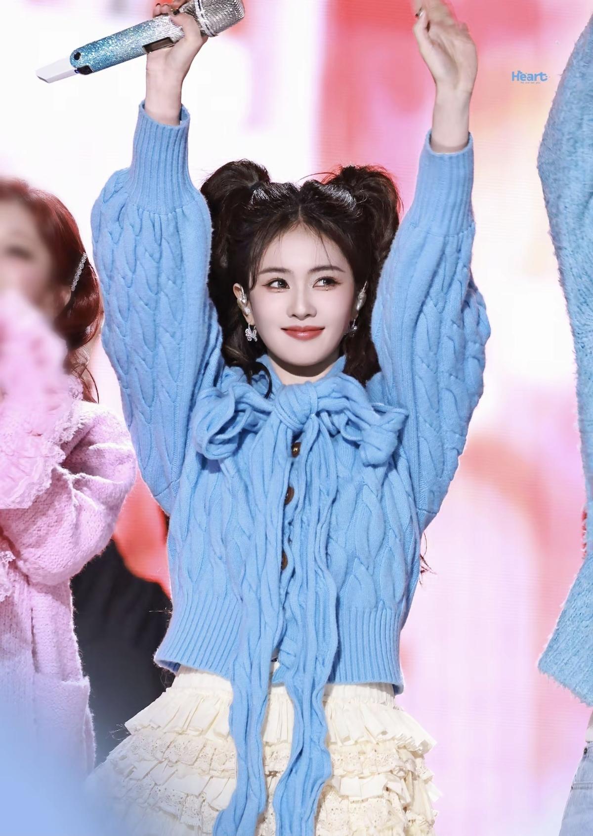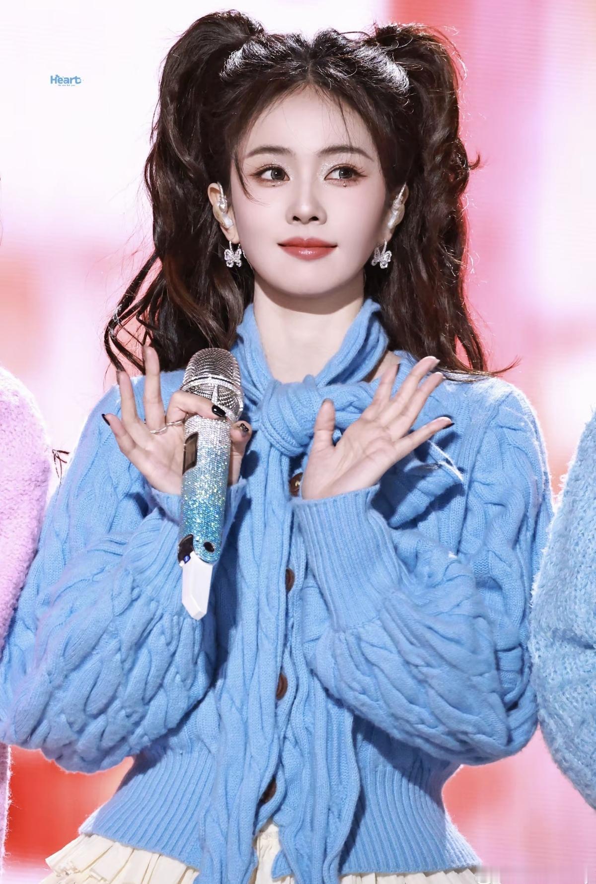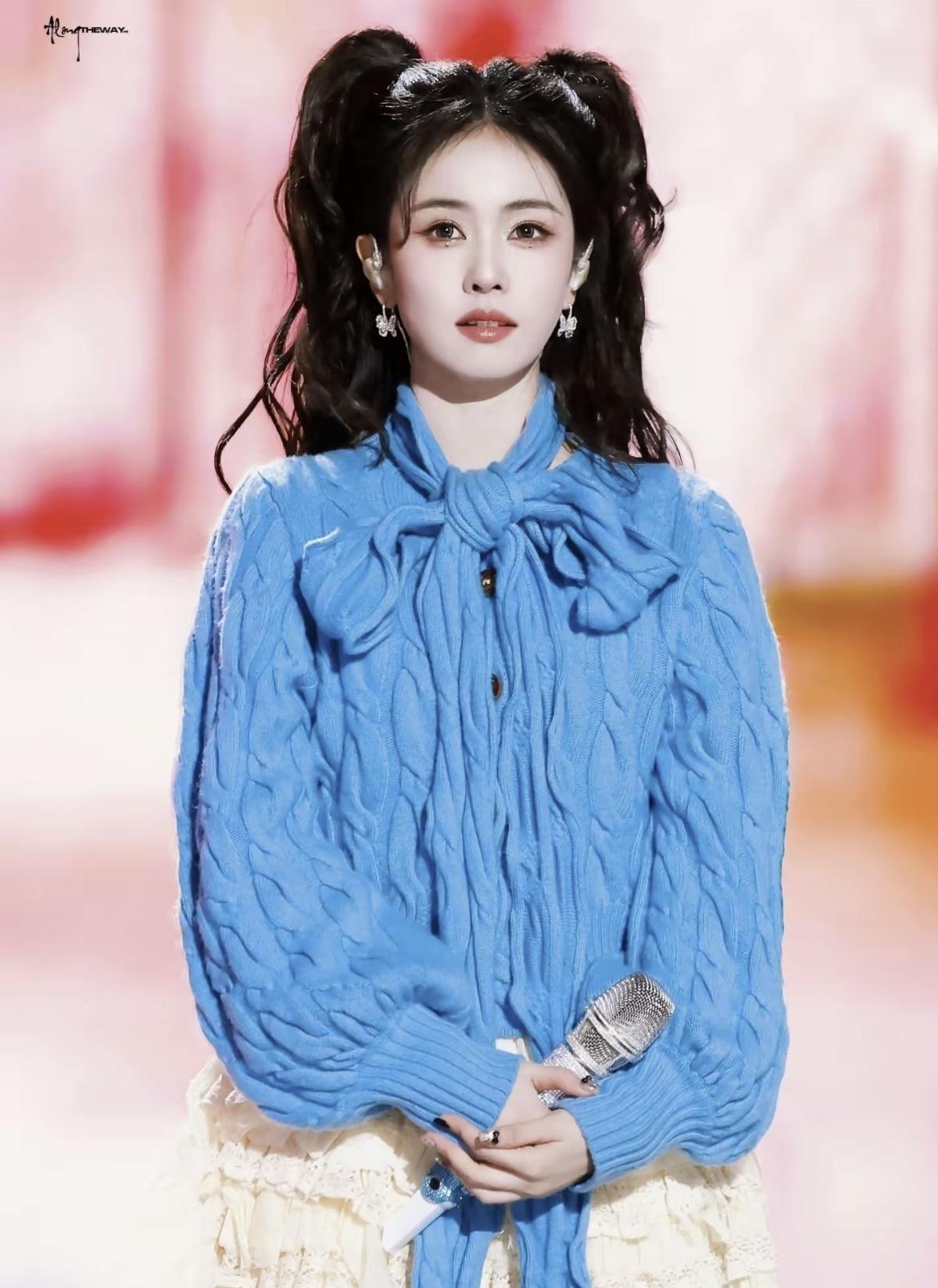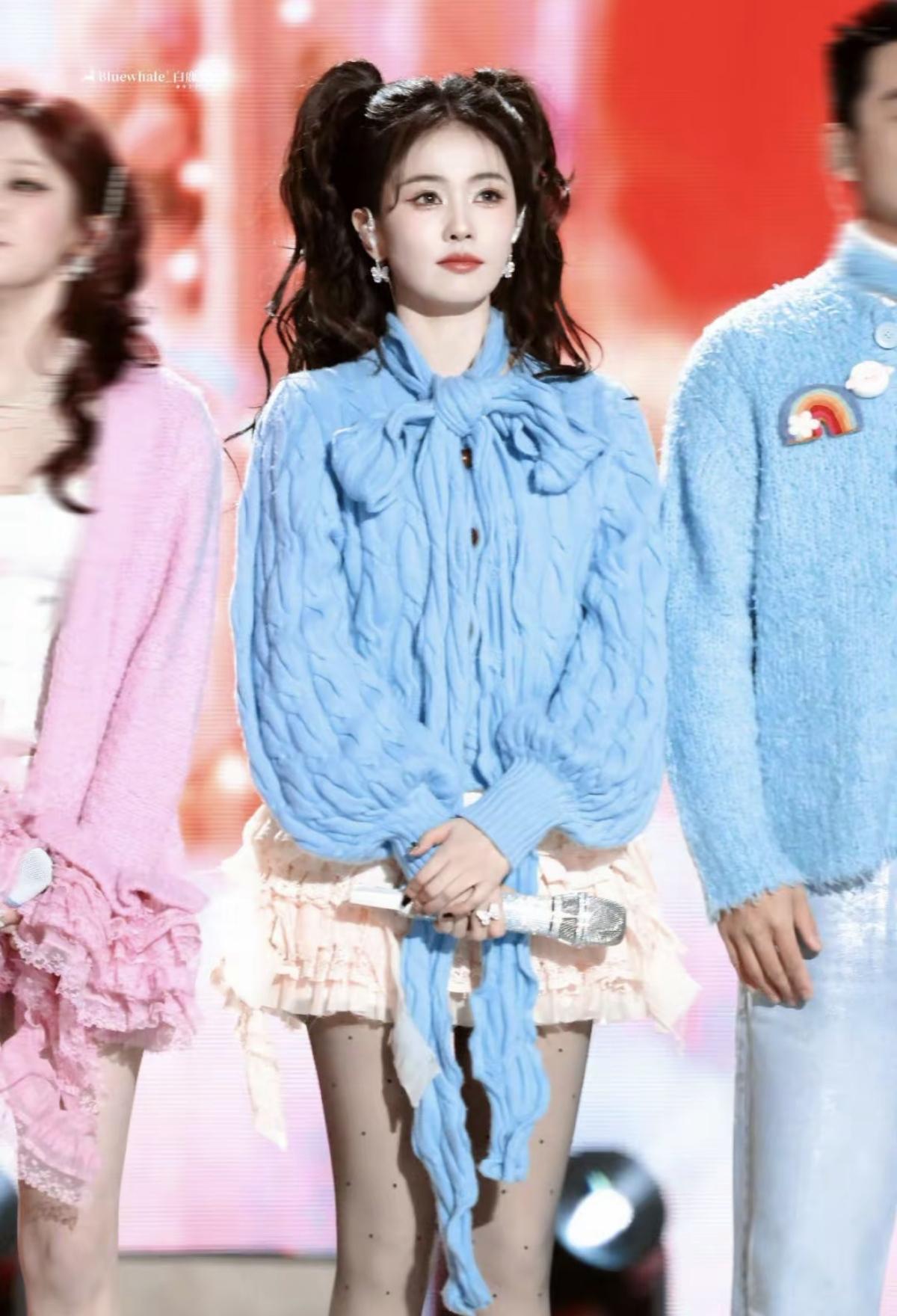 蓝色针织开衫的绑带设计为视觉焦点,弱化了针织单品的厚重感,双马尾造型则强化了灵动俏皮的舞台气质,是白鹿少有的甜妹系舞台造型之一[赞][给力]娱乐明星