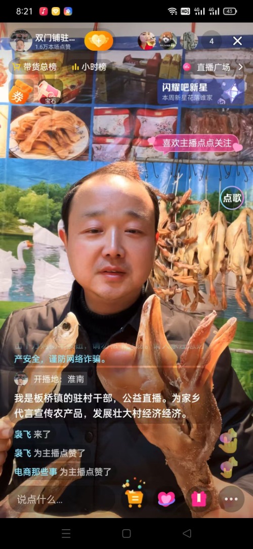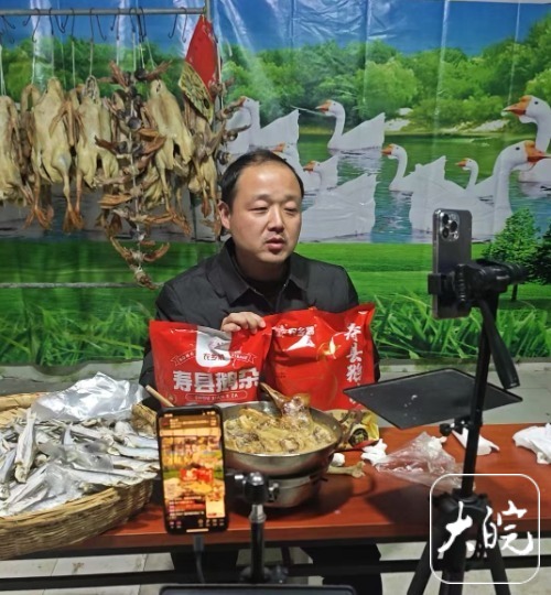 2024年12月,赵烈冬看到村里及周边有数万只散养皖西白鹅、年出栏500多头寿霍黑毛猪以及丰产的安丰塘生态鱼等优质农产品,出现销路不畅和价格上不去的困境,毅然决定“跨界”当主播,探索电商助农新路。