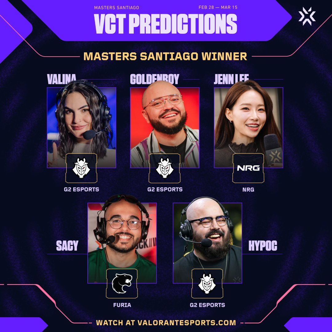 虎扑02月26日讯海外解说对本次大师赛的冠军预测:3位解说认为G2将夺冠