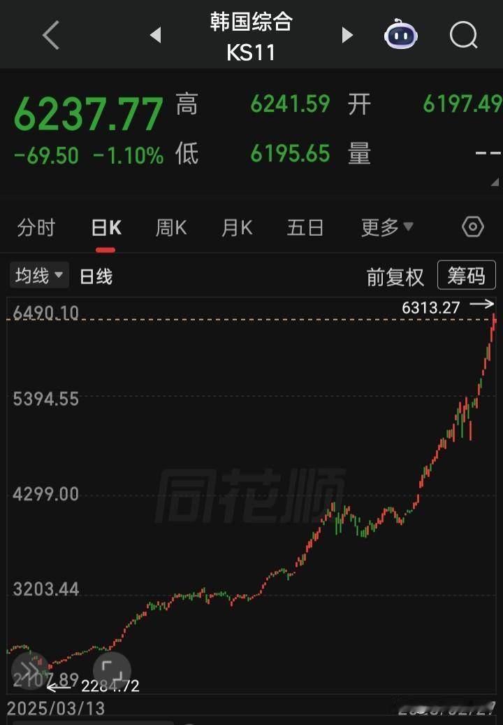 大家觉得我们是否应该派考察组去韩国金融监督院切磋交流和交易所参观他们的交易模式,学习他们为何敢于让股市如此疯狂的上涨,是如何做到的,他们真正不怕涨的原因究竟在哪? 学习他们的监督制度与交易制度和把保护投资者权益真正放第一位的,我们完全可以借鉴并使用 年内28个交易日涨幅超48%,气魄与魄力所至