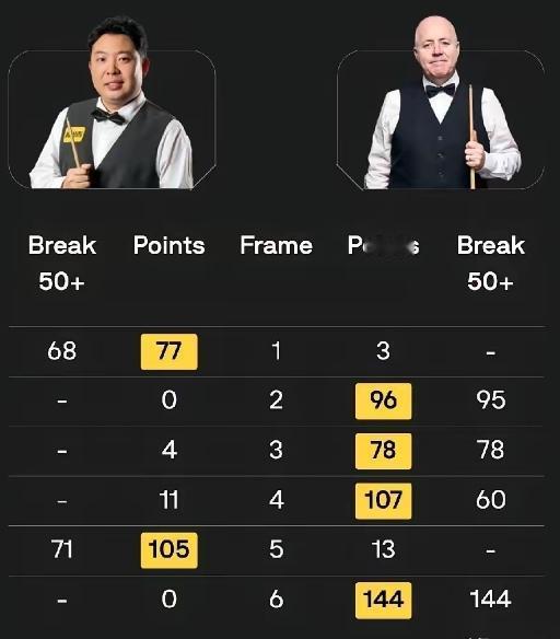 张安达2-4不敌希金斯!无缘晋级威尔士公开赛八强 在今天凌晨刚刚结束的一场八强争夺战中,中国名将张安达迎战七五三杰之一的希金斯,张安达发挥欠佳,2-4不敌希金斯。无缘晋级威尔士公开赛的八强,张安达取得开门红后,连输三局,1-3被希金斯拿到赛点,随后张安达挽救一个赛点,最终2-4完败。比赛过程如下: 第一局,张安达凭借单杆68分77:3先拔头筹,取得开门红。 第二局,希金斯立刻还以颜色,凭借单杆95分,96:0扳平局分。 第三局,希金斯凭借单杆78分,78:0再下一局,反超局分2-1领先。 第四局,希金斯延续良好的手感,打出单杆60分,107:11拿下此局,一波三连鞭反超局分3-1领先,率先拿到赛点。 第五局,张安达打出单杆71分,105:13挽救一个赛点,把局分追到2-3,双方相差一局。 第六局,希金斯愈战愈勇,轰出单杆144分清台。144分是本届赛事至今为止的单杆最高分。 整场比赛,张安达状态不佳,打出两杆50+;希金斯状态火热,轰出单杆144的最高分,连续打出三杆50+,晋级八强在情理之中。斯诺克八强争霸