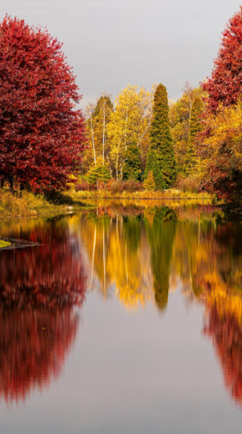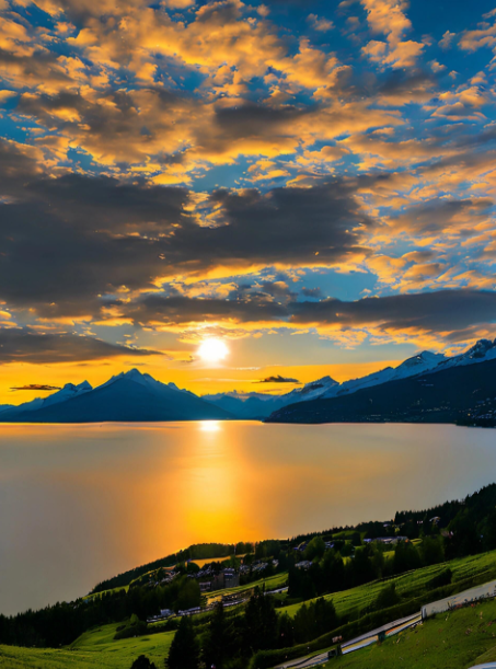 落日余晖清倒影,远看山川不是山
