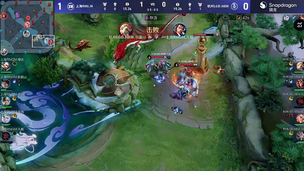RNG.M率先开团拿到第一滴血,后续LGD补上打出1换1