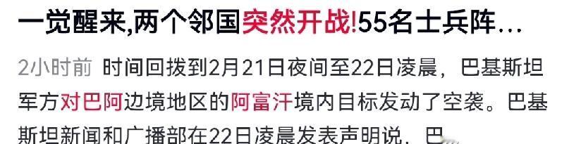 彻底撕破脸!巴阿直接开战,喀布尔被炸,地区告急! 昨夜,阿富汗突然对巴基斯坦边境据点发动猛攻,巴方立刻强硬反击。27日巴基斯坦防长公开宣告:这是我们和你们的公开战争,耐心已耗尽。 话音刚落,巴空军大规模越境空袭,喀布尔、坎大哈等多座重要城市接连爆炸,军事目标遭精准打击,战火从边境直接蔓延至阿富汗腹地。 冲突并非偶然。巴塔长期跨境袭击巴军警平民,前不久的血腥袭击彻底击穿巴安全底线。百年杜兰德线民族矛盾、百万阿富汗难民遣返危机、外部势力暗中挑拨,再加上此前停火协议形同虚设,双方彻底失去互信。 如今两国全面对抗,互不让步,空袭不断升级,平民流离失所,地区安全形势急剧恶化,短期内看不到停火希望。 大家怎么看? 巴阿冲突