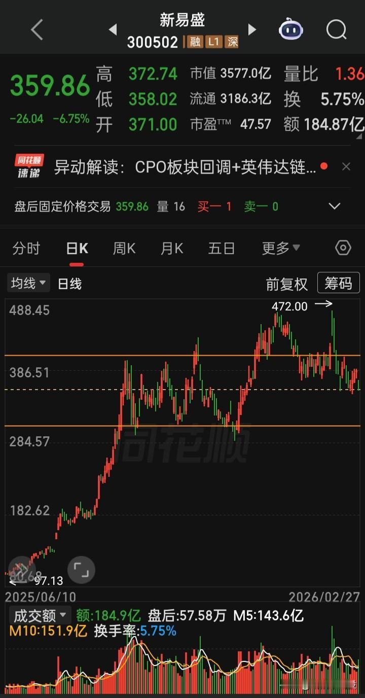 【每日观察2026.02.27】在总成交额25055亿,比上个交易日缩量512亿,上涨3271家,下跌2068家,涨停91家,跌停1家的情况下,谁在成交额前十 中际旭创188.06亿,跌6.68% 新易盛 184.87亿,跌6.75% 华胜天成176.19亿,涨6.12% 胜宏科技149.39亿,跌3.55% 天孚通信144.31亿,涨1.85% 寒纪武-U143.22亿,涨0.79% 北方稀土133.76亿,涨5.58% 包钢股份130.33亿,涨8.72% 润泽科技129.60亿,涨1.19% 网宿科技128.29亿,涨2.28%