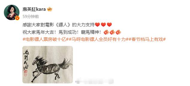 惠英红晒自己画的马 晒自己画的马庆祝《镖人》票房破10亿,厉害了红姐!