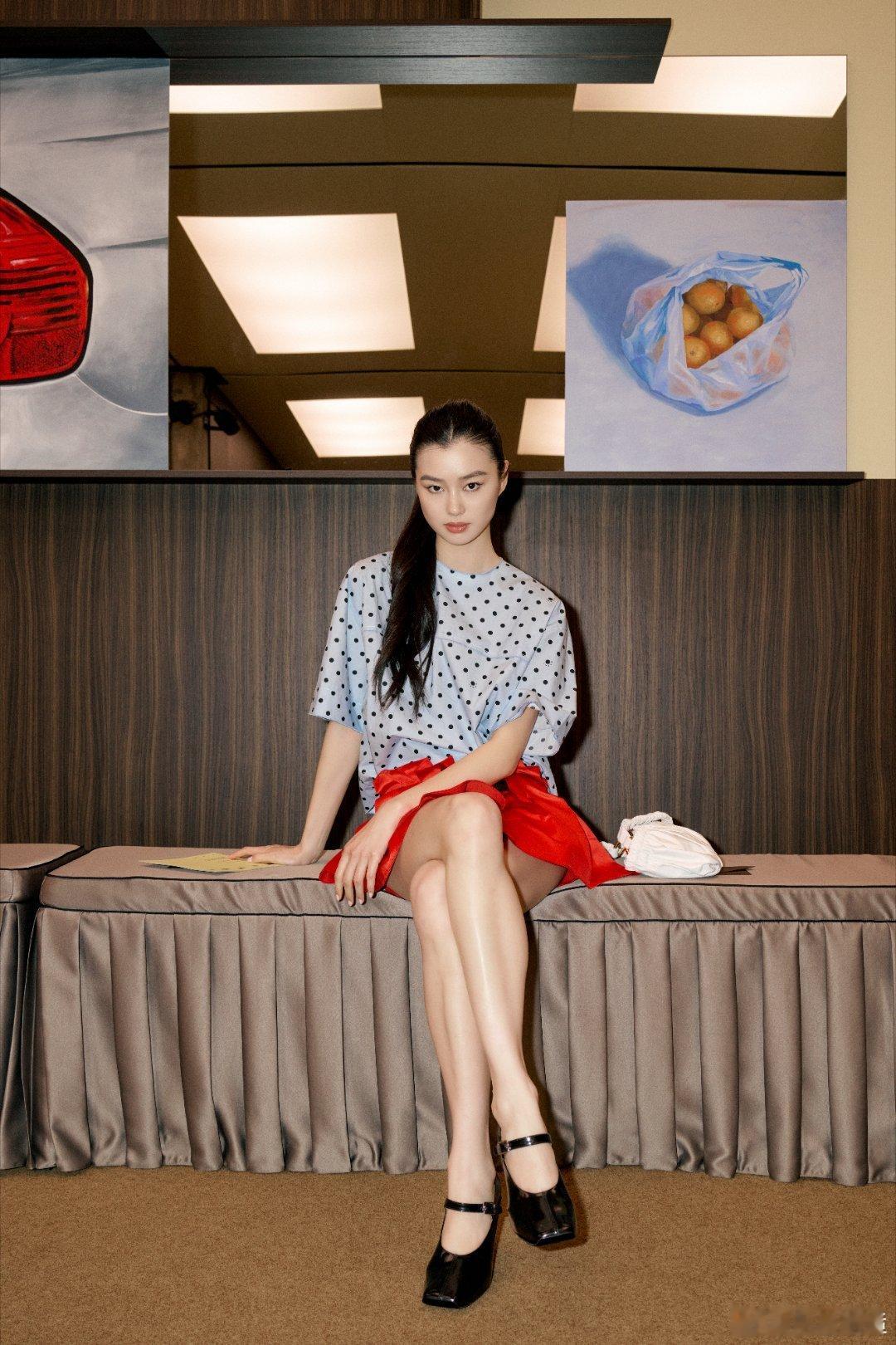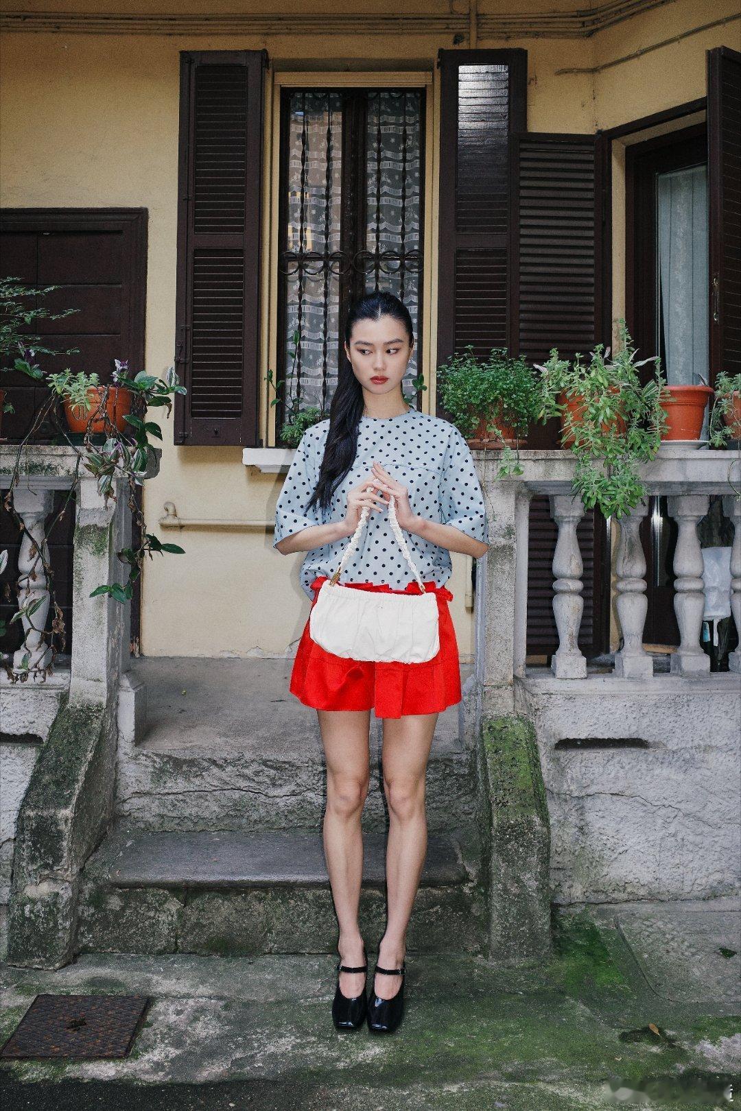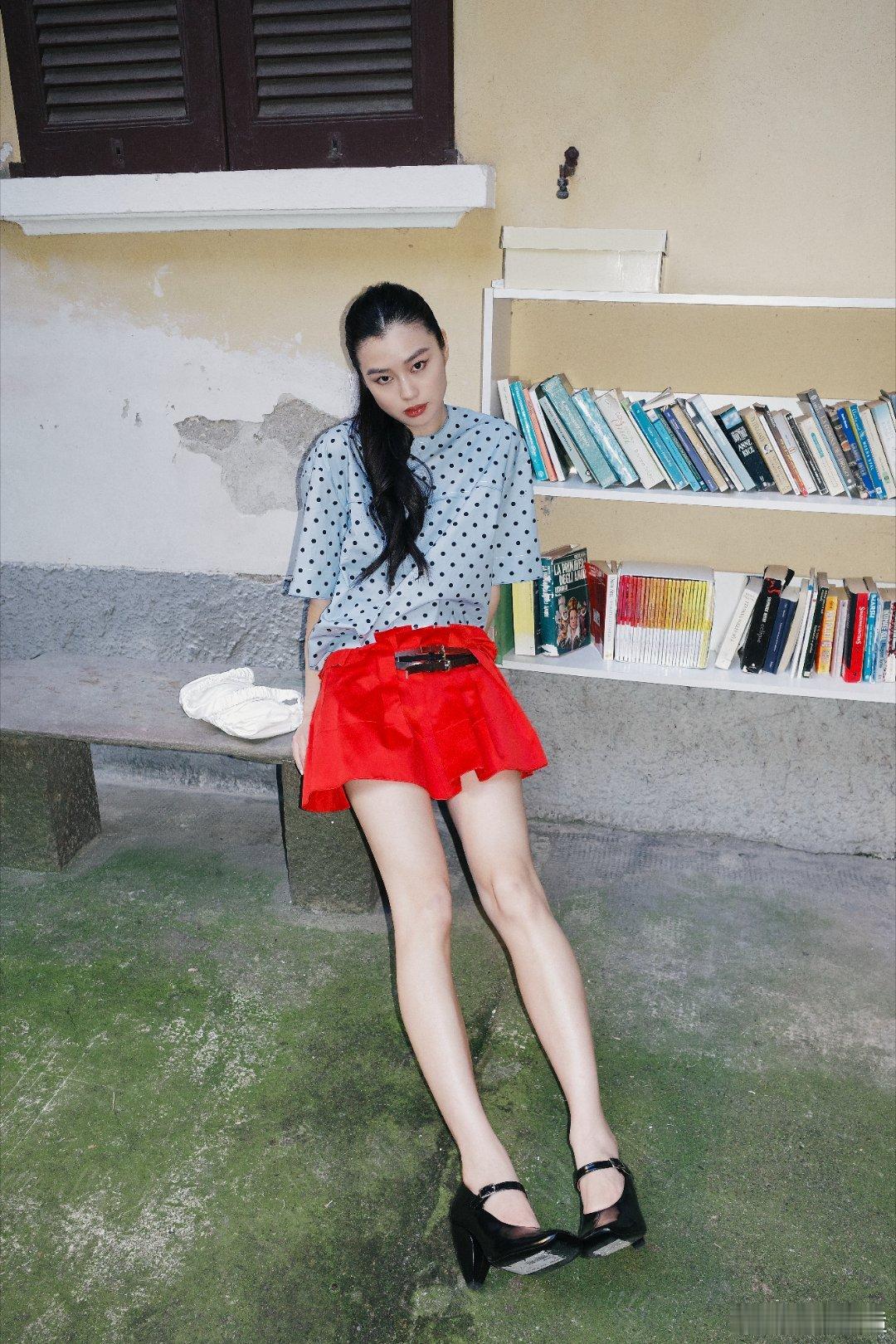 陈瑜波点红裙完全是少女陈瑜身着波点上衣与鲜红短裙,姿态慵懒又灵动,少女感扑面而来,仿佛从画报中走出的青春主角。模登日记