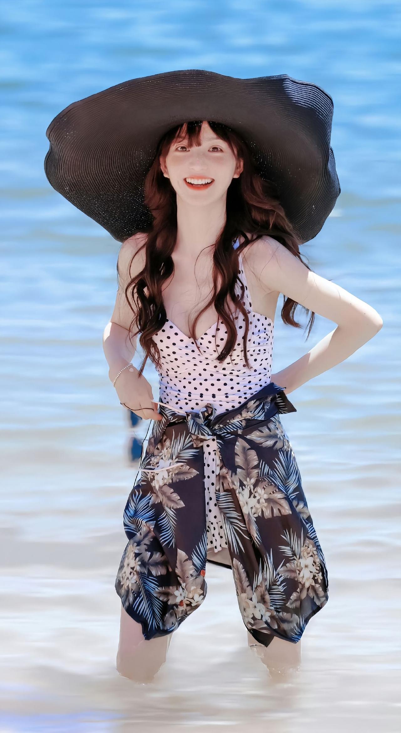 田曦薇 《海的呼吸》 风把蓝揉碎在裙摆上 波点泳衣洇开一片白月光 草帽压着半张脸 让海的呼吸,先吻过帽檐 脚步漫过浅滩的碎浪 每一步都踩碎透明的星 湿发垂成墨色的线 系住风,也系住远处的山影 有时抬手,不是为了遮阳 是想接住海递来的光 有时低头,不是为了看浪 是让心跳和潮汐对唱 你看那片蓝,从脚尖漫到眉梢 把所有的褶皱都熨成浪涛 而我们,只是海的一部分 在它的怀里,轻轻摇晃
