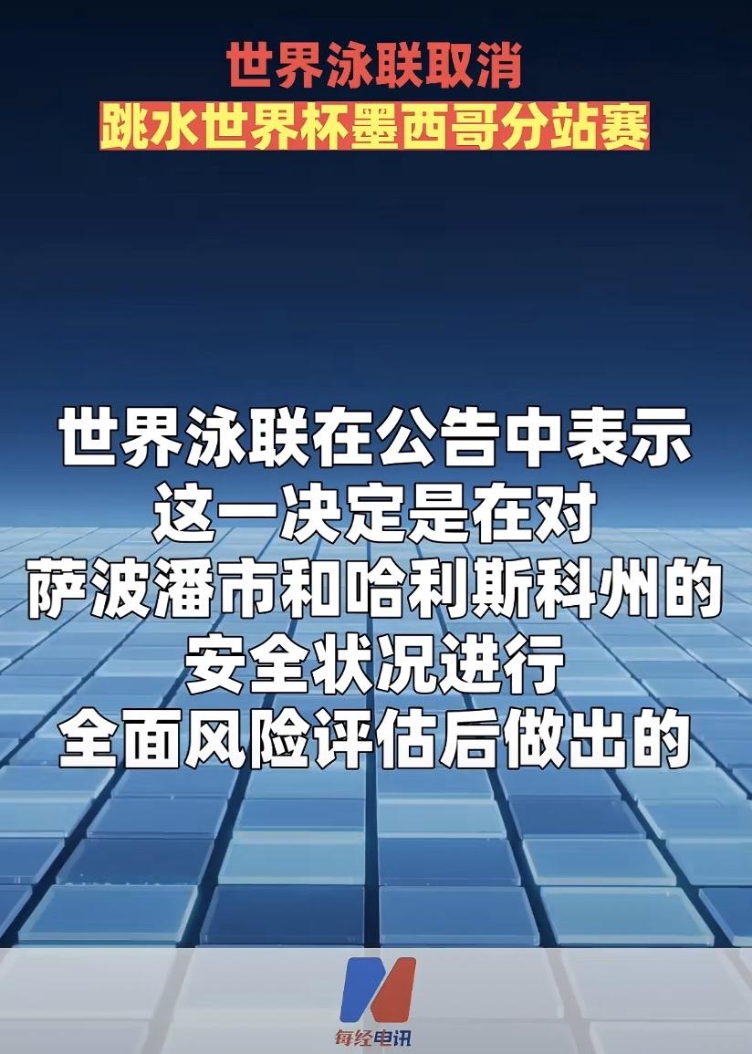 墨西哥站取消了,命运只剩一跳 2026年2月26日, 世界泳联一纸公告: 墨西哥萨波潘站,取消。 因为安全。 因为"哈利斯科州新生代"集团头目身亡,全州骚乱,暴力蔓延。 世界泳联说得很清楚:为了所有参赛人员的安全,必须取消。 原计划的两站分站赛, 变成了一站定胜负。 蒙特利尔的每一次起跳, 直接决定北京总决赛的门票归属。 一场没有硝烟的“取消”, 改写了所有人的命运。 有人笑着晋级,有人提前离场 2月28日凌晨3:30,蒙特利尔站女子单人10米台预赛结束。 冠亚季军: 冠军:崔家溪(中国),381.10分 亚军:蒋林静(中国),369.50分 季军:卢为(中国),344.95分 中国🇨🇳队包揽前三; 按规则仅前两名晋级决赛, 卢为,第三名,未晋级。 这就是竞技体育的真相 在命运面前,没有人能提前写好剧本。 你准备好了,机会不一定来。 你拼尽了全力,规则可能突然变。 你练了四年,可能因为一场远方的骚乱,让一年的努力瞬间归零。 崔家溪笑着等待决赛, 卢为转身走向双人的训练场, 蒋林静准备迎接她第一次世界杯决赛。 她们都在用自己的方式, 告诉这个世界: 命运无常,但努力不变。
