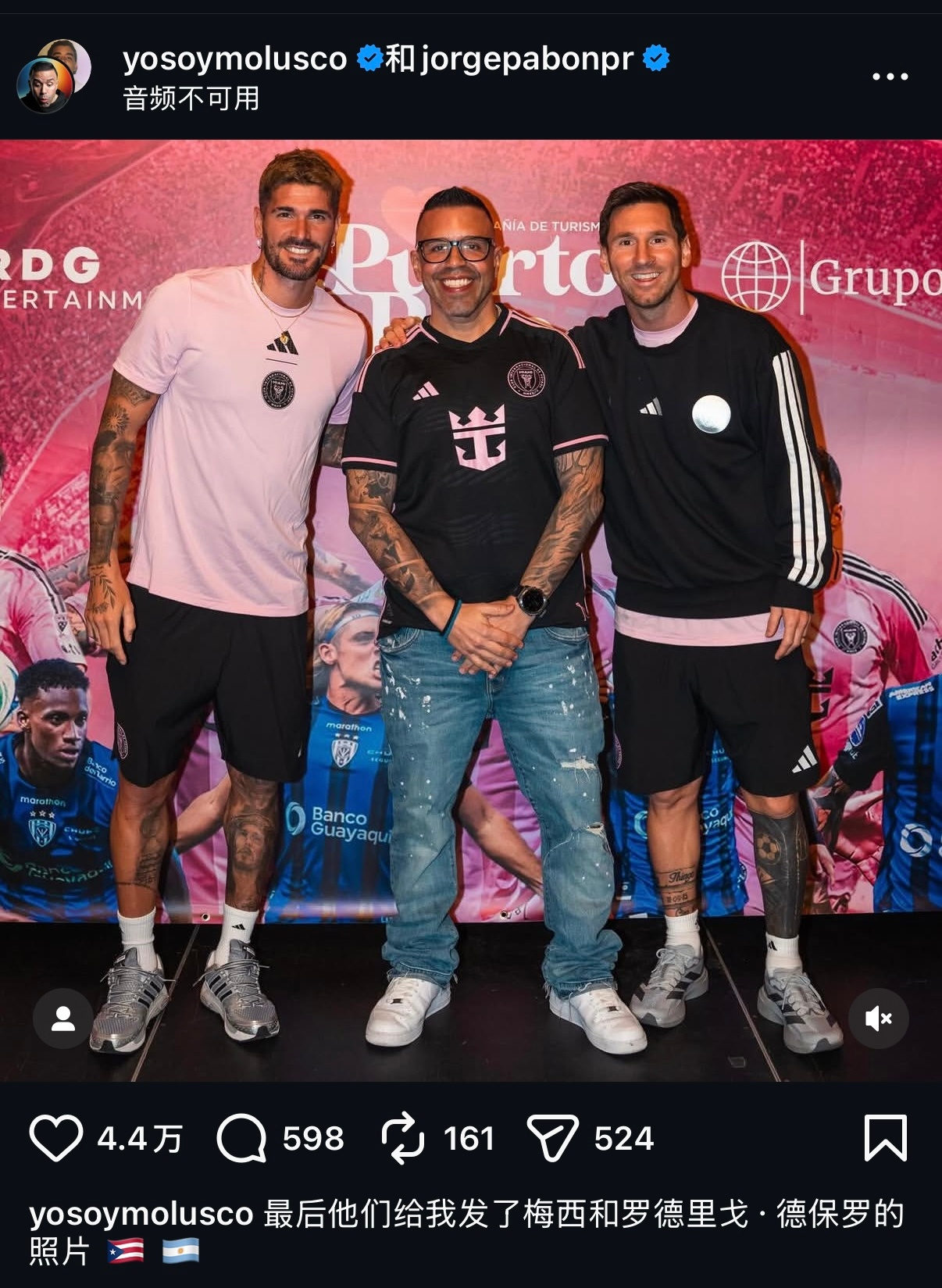 梅西、德保罗和Molusco媒体记者Jorge Pabon Ocasio的合照?