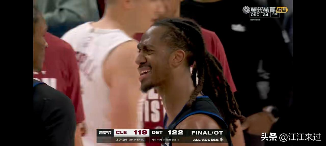 骑士119比122加时不敌活塞!加时赛活塞上来先来个6比0,骑士回了一波5比0!活塞哈里斯关键时刻祭出背打打进将骑士逼到绝境!梅里尔抢投三分不进,莫布利关键一投不进,骑士憾负! 双方罚下三主力!加时赛还剩1分半时邓肯罗宾逊也是被罚下!坎宁安和艾伦常规时间就被罚下! 骑士队:艾伦25分9板4助攻,莫布利23分12板!梅里尔20分,泰森15分4板,施罗德12分9助攻!活塞队:杜伦33分16板!坎宁安25分10板7助攻!