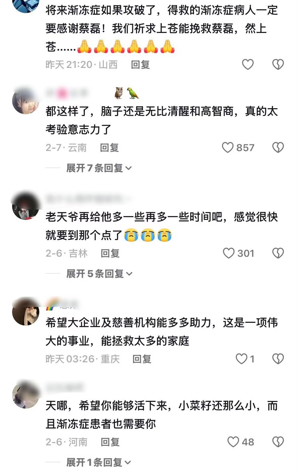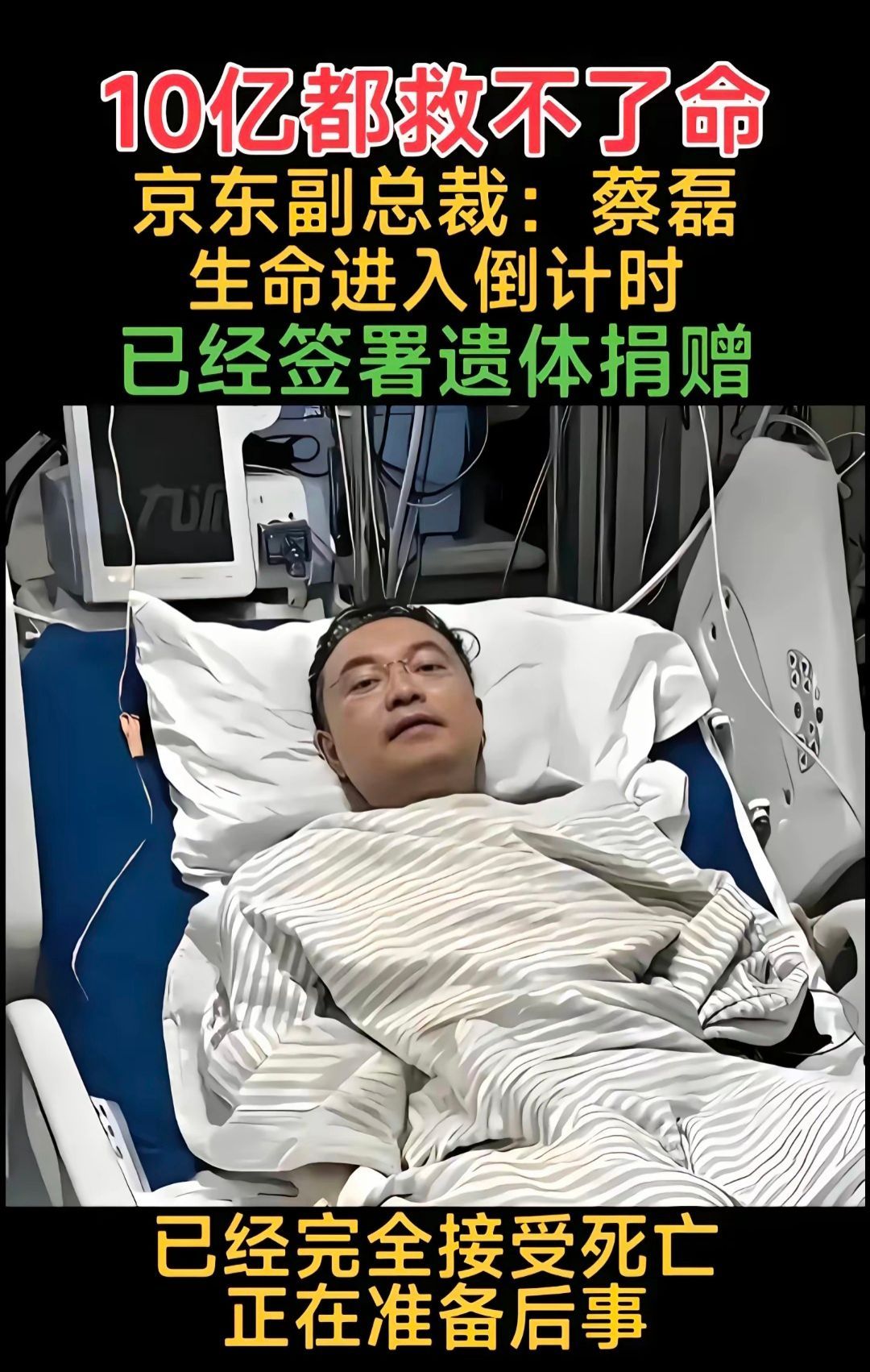 蔡磊已进入渐冻症疾病的终末期 今天必须说说蔡磊,这才是中国人的脊梁。明知自己时间不多,还把所有钱和精力都投给渐冻症科研用破冰驿站给科研输血,夫妻俩捐出一个亿。他不是在救自己,是在为所有病友点灯,拼尽全力想救100万陌生人什么是坚强,这才是!