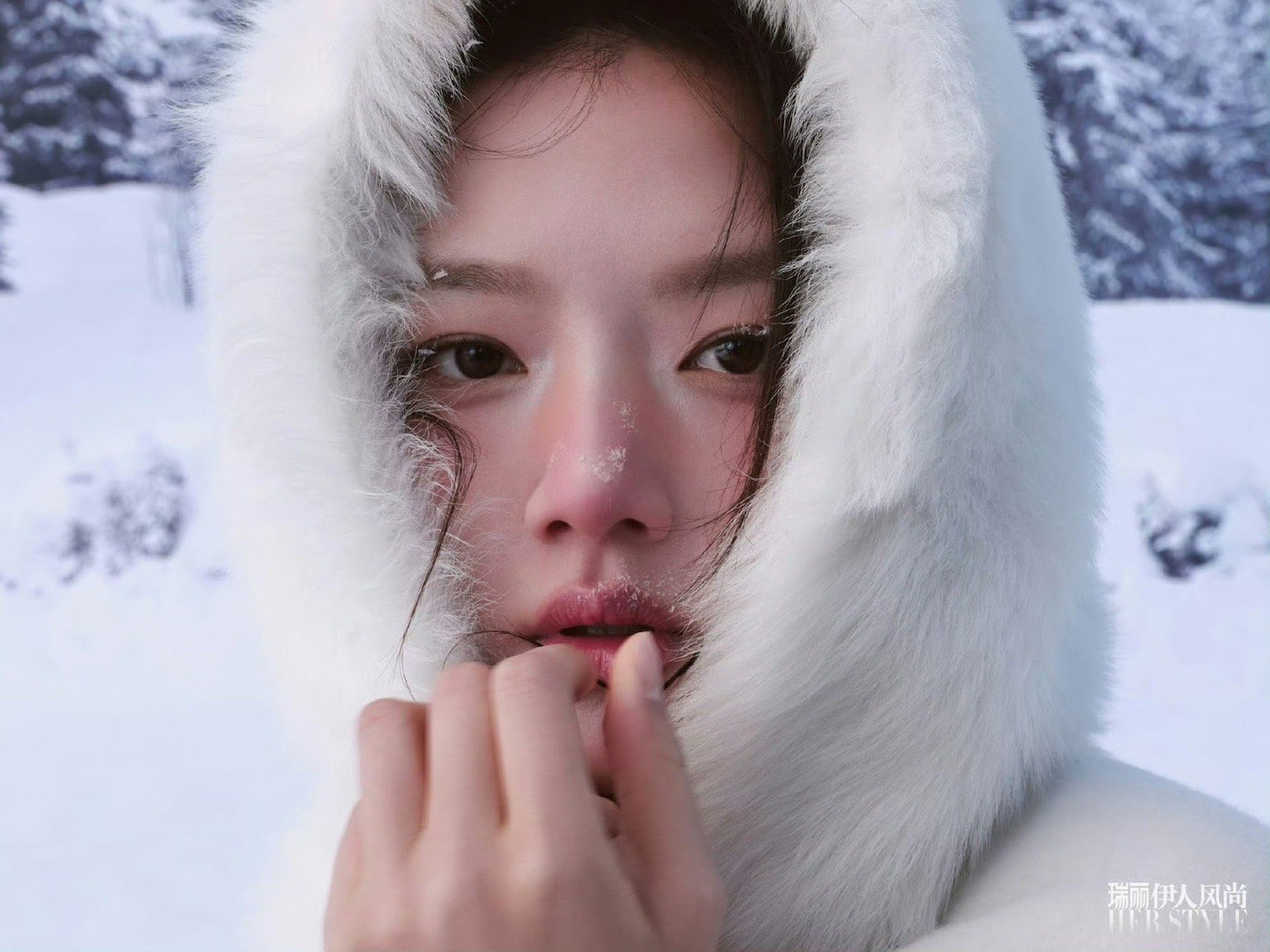 任敏冻红妆金鹤龙给任敏化的瑞雪冻红妆 雪吻红妆,灵气满格!任敏这组雪地大片太戳心,清透破碎感直接拉满✨
