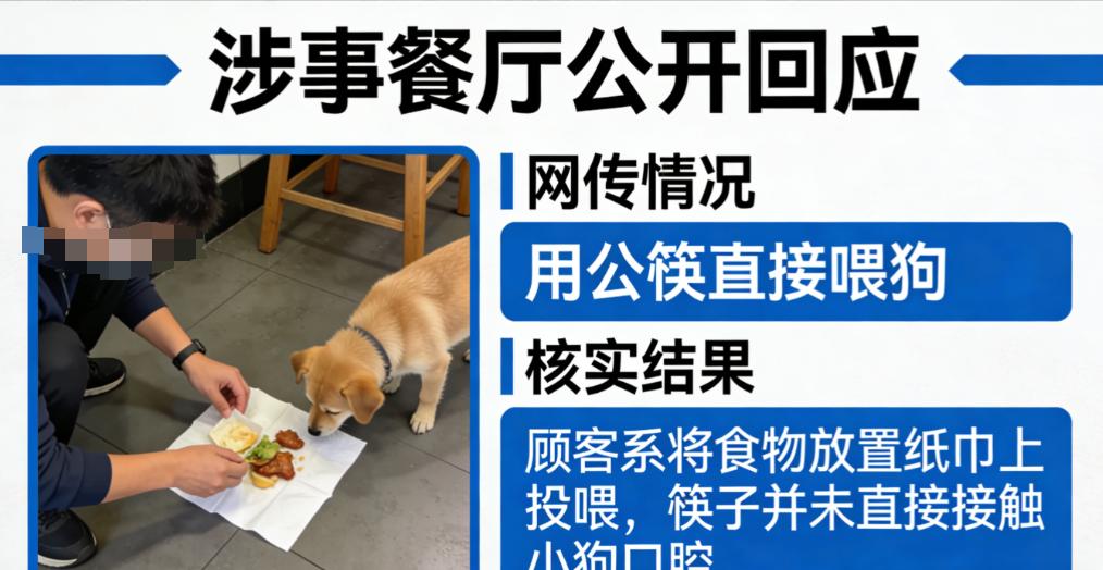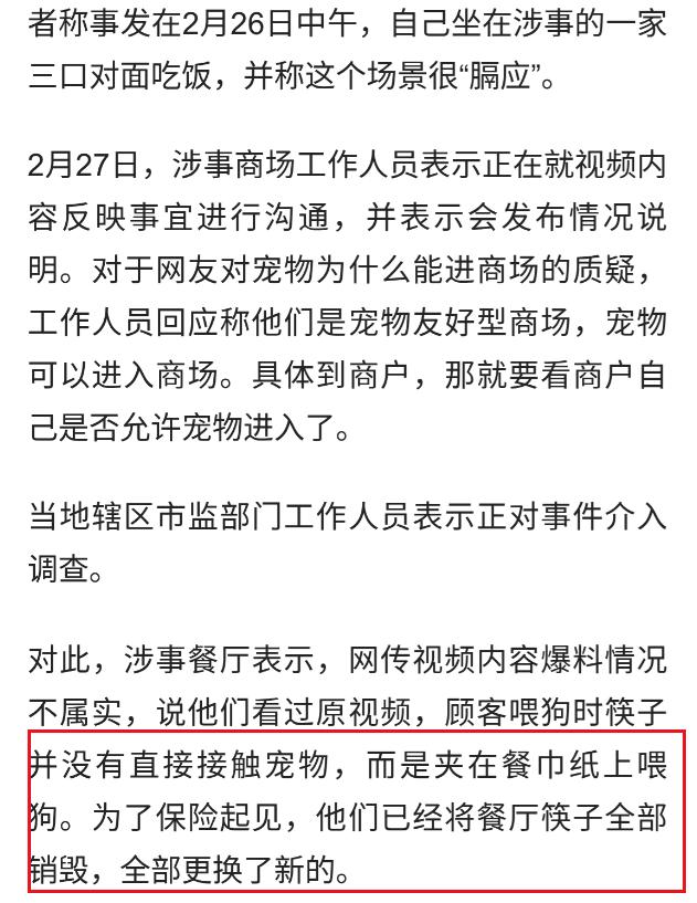 浙江一餐厅顾客用筷子喂狗?餐厅称不属实,网友:狗蹲椅上就不对 是没有直接筷子喂,但是有个动作,筷子夹着东西快抵近狗嘴巴然后退回来,整个动作让谁看了都不爽,餐饮店就不该让狗进去! 餐厅是给人提供食用的地方。不是给狗提供食材的。作为餐厅老板应该铭记这一点。现在成了啥了?绝对不去这样的餐厅就餐。 在外面吃饭,但凡看见有宠物进去的餐饮店,千万不能进去消费!里面餐具百分之百宠物使用过,店家也不会高温消毒,更不可能更换新的! 有的狗主人宠狗可谓到了极致,从吃穿的住的到洗澡装饰等,比照顾他们自己的老人还到位,旁边人看起来真的感觉无法理解,不知道这种做法是不是有些不正常啊?