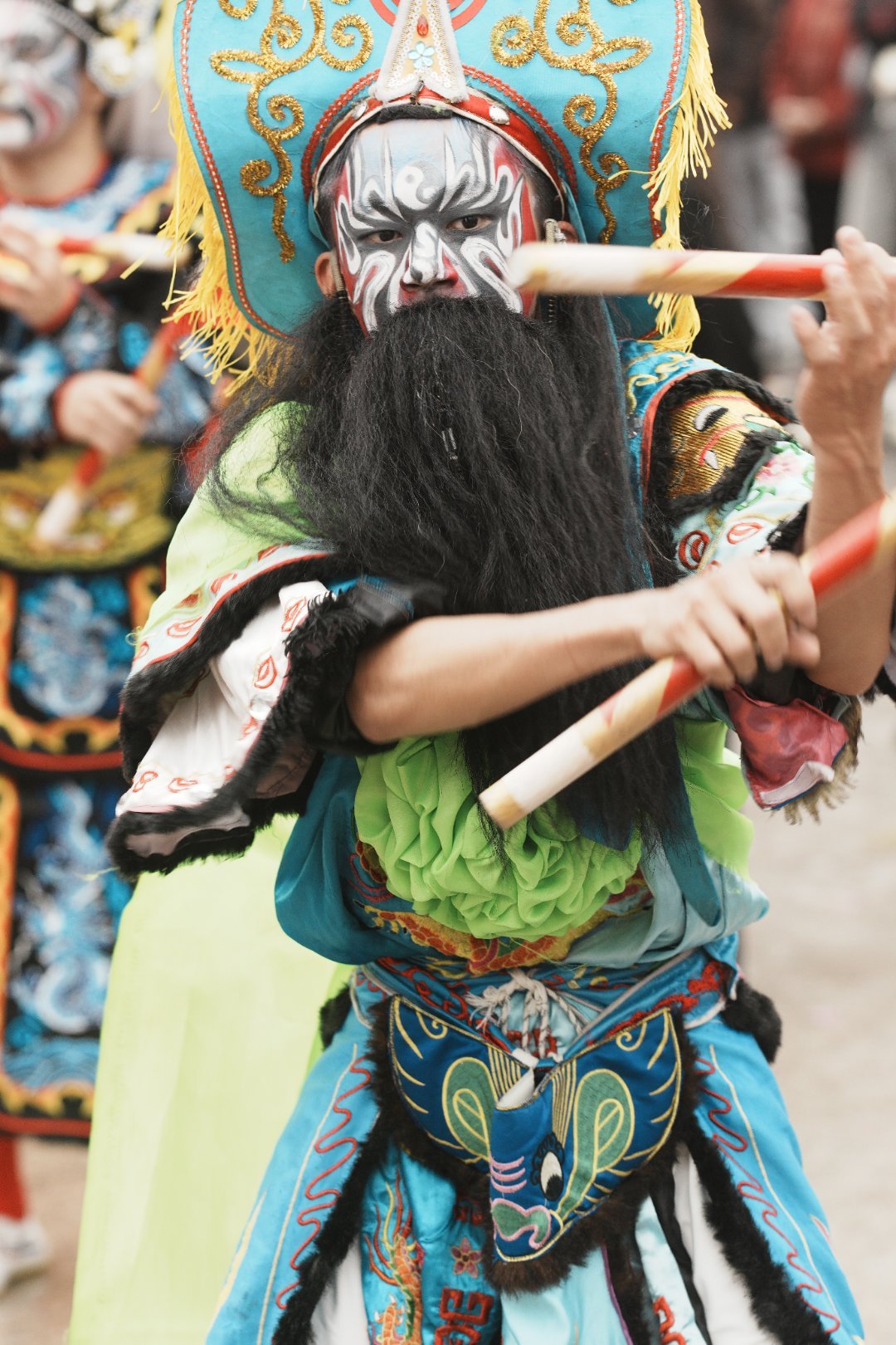 *在路上*珠浦村英歌舞营老爷,老中青少齐上阵,欢歌笑语,气氛爆燃...潮汕“迎老爷”(也叫“营老爷”)是每年正月把村里的守护神(老爷)请出庙,抬着神轿巡游全村,祈求风调雨顺、驱邪纳福...英歌舞:脸画脸谱、手持短棍,动作刚猛如战舞,模仿梁山好汉攻打大名府...广东汕头...自驾游第11天... 漳州·东山岛
