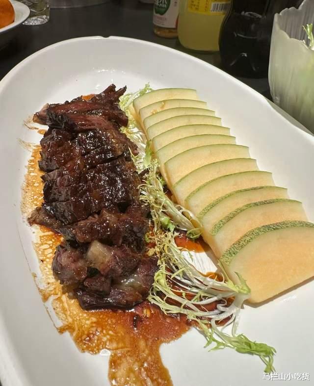 陈皮焦香牛肉:牛肉卤制得像叉烧肉,看似普通实则惊艳!牛肉吃起来酸甜香嫩,肉质一点不柴,还可以伴着哈密瓜一起吃,韵味十足。