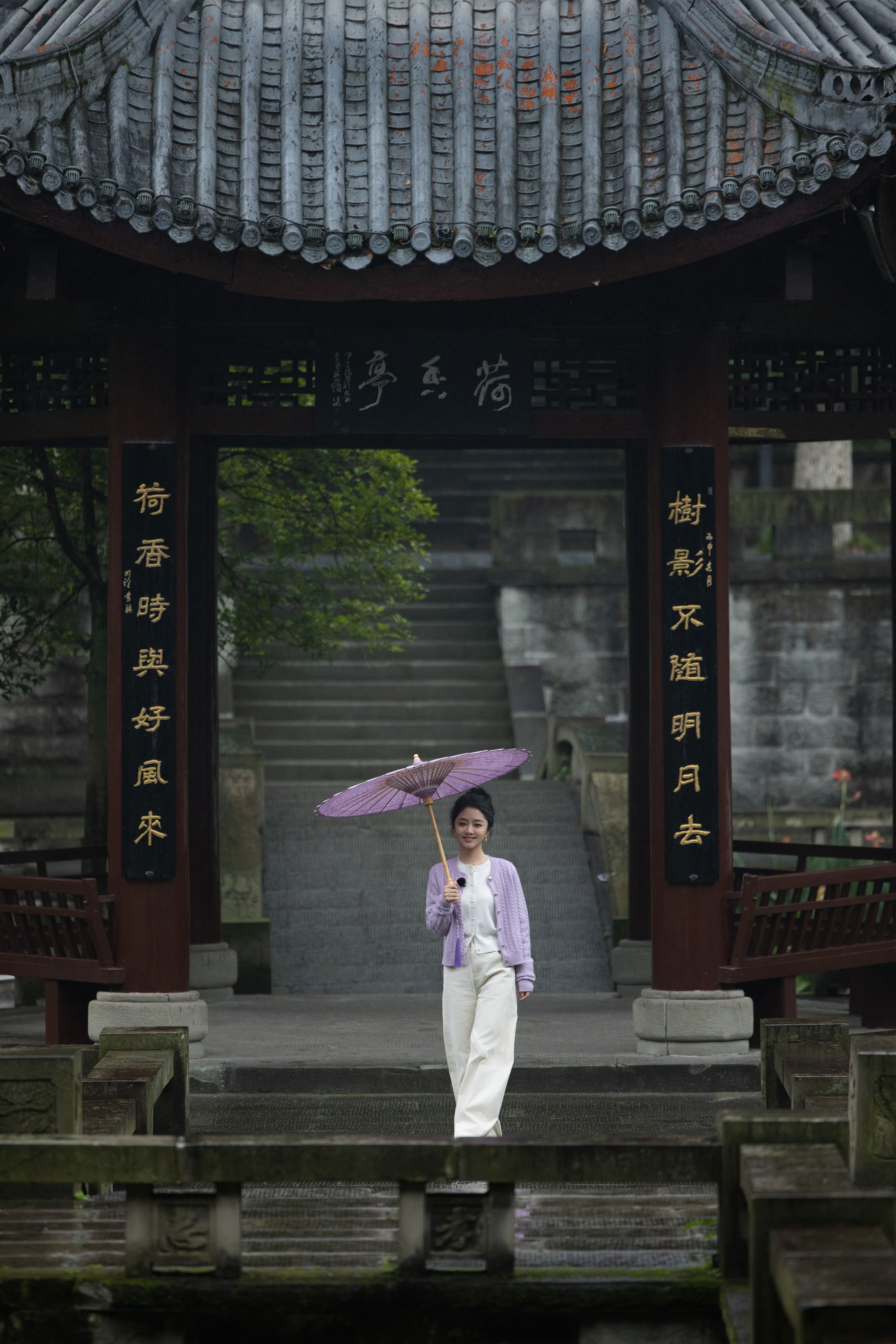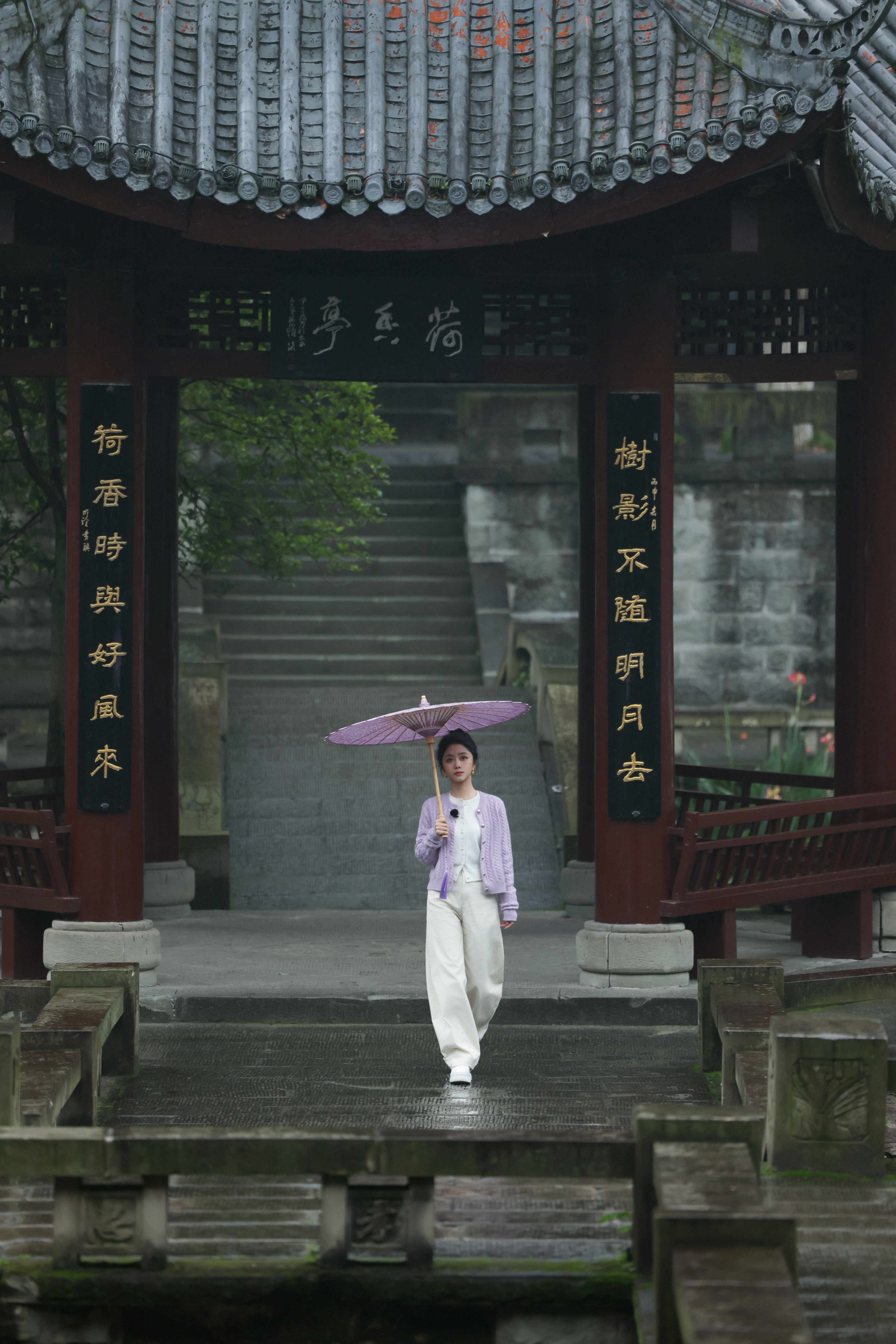 谭松韵 ☔️总台爱上这座城 紫韵入画,一城烟雨朦胧。两小姐撑伞漫步家乡泸州,揽尽