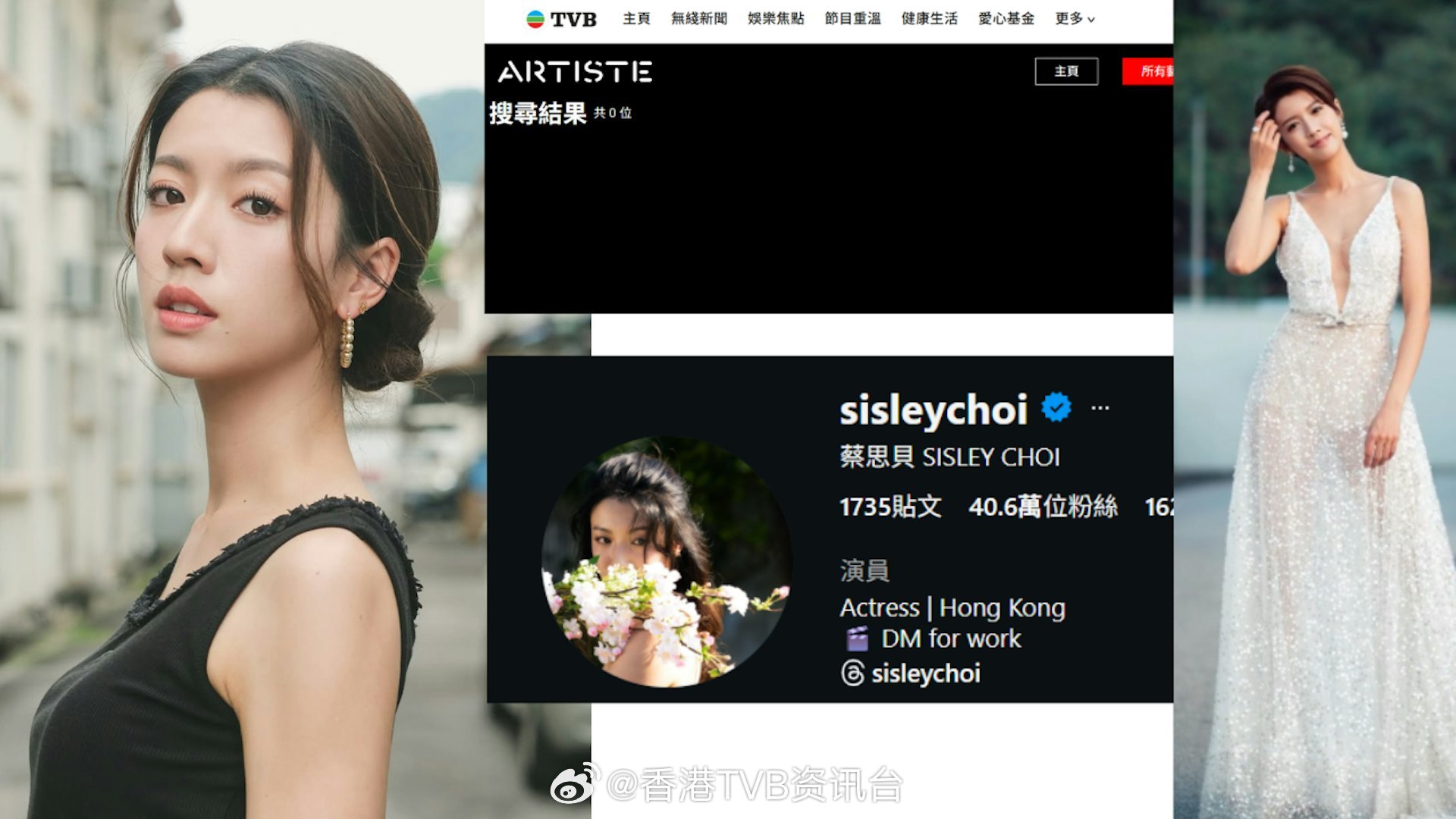 现年35岁的视后蔡思贝(Sisley),自2024年剧集《飞常日志》后便再无新作,坐足两年冷板凳。今日(28日)有网民发现TVB官网已搜寻不到其档案,疑被官网正式除名,与效力13年的娘家分道扬镳。