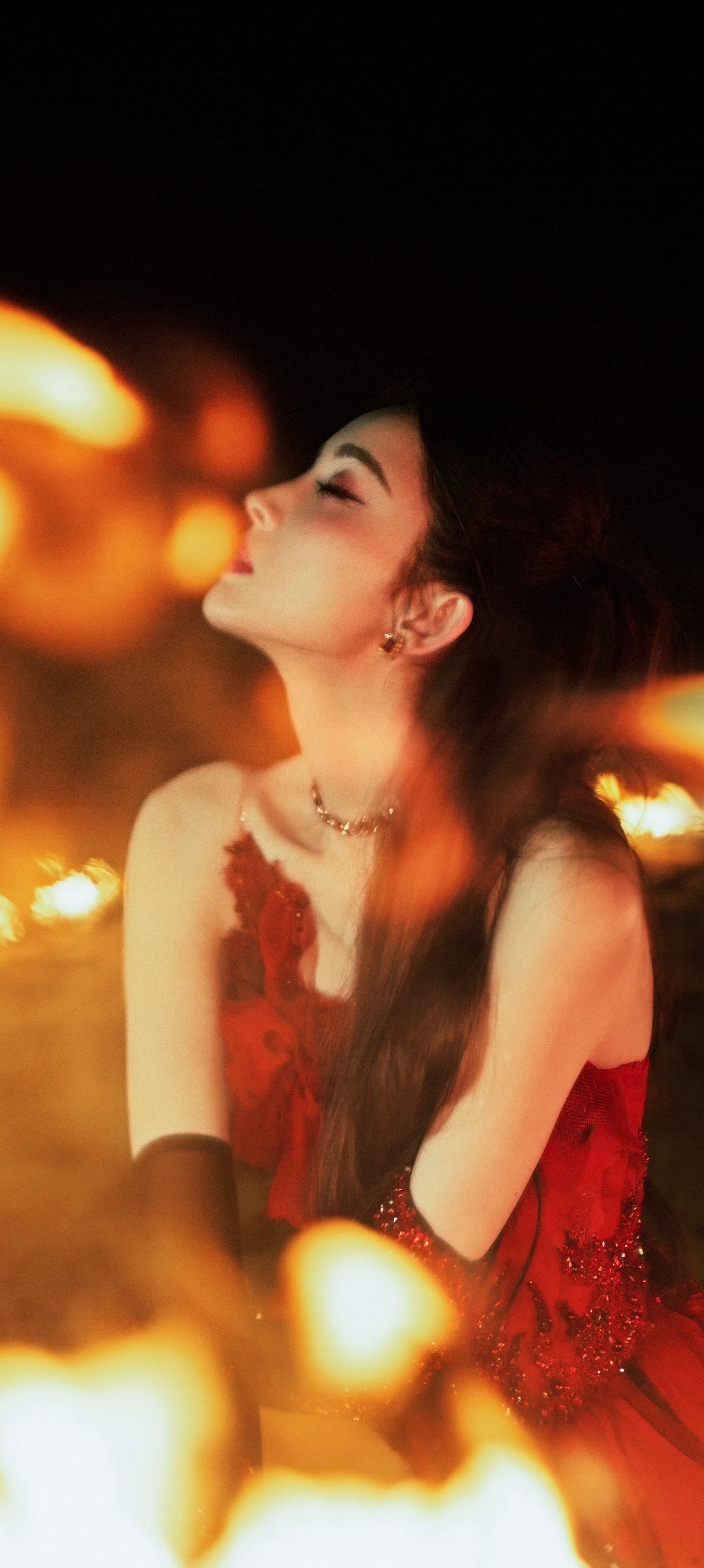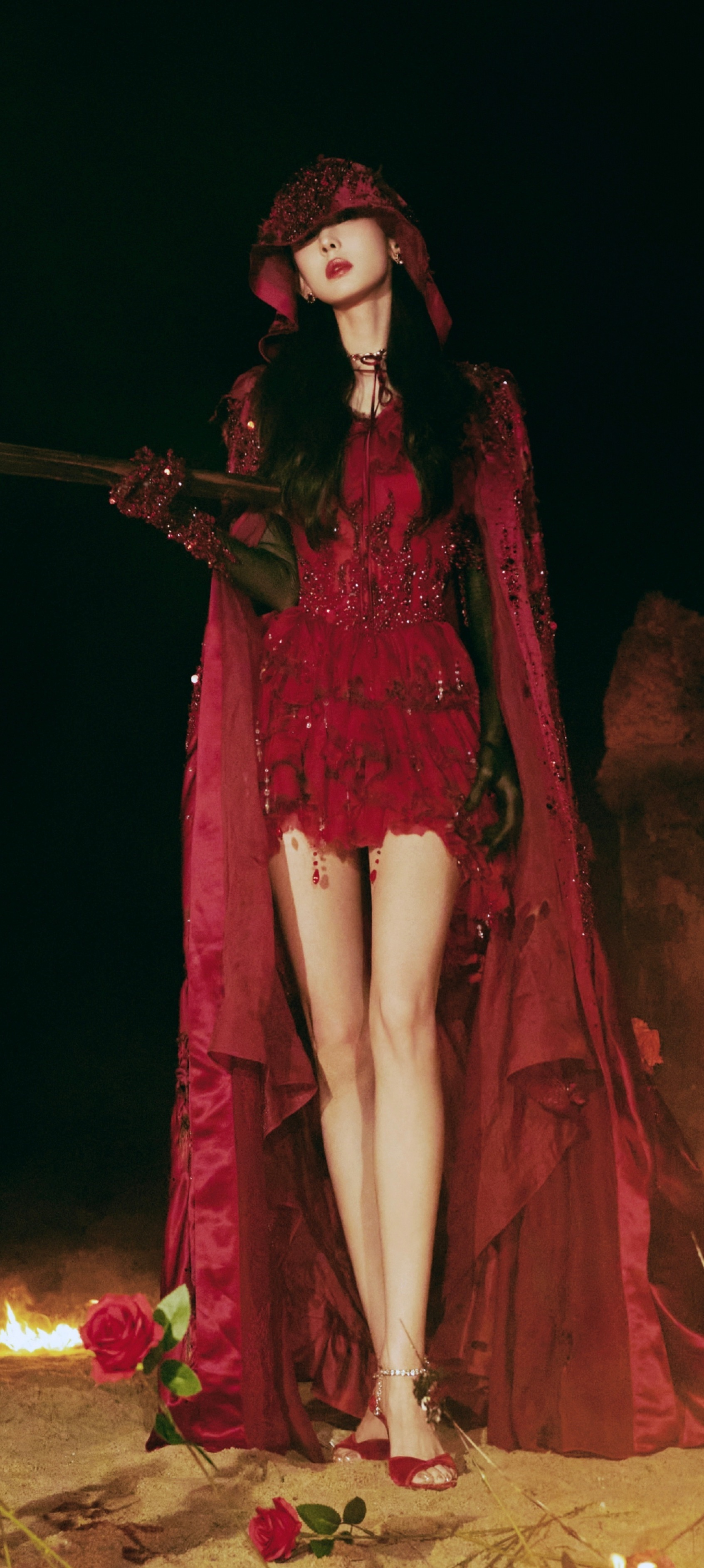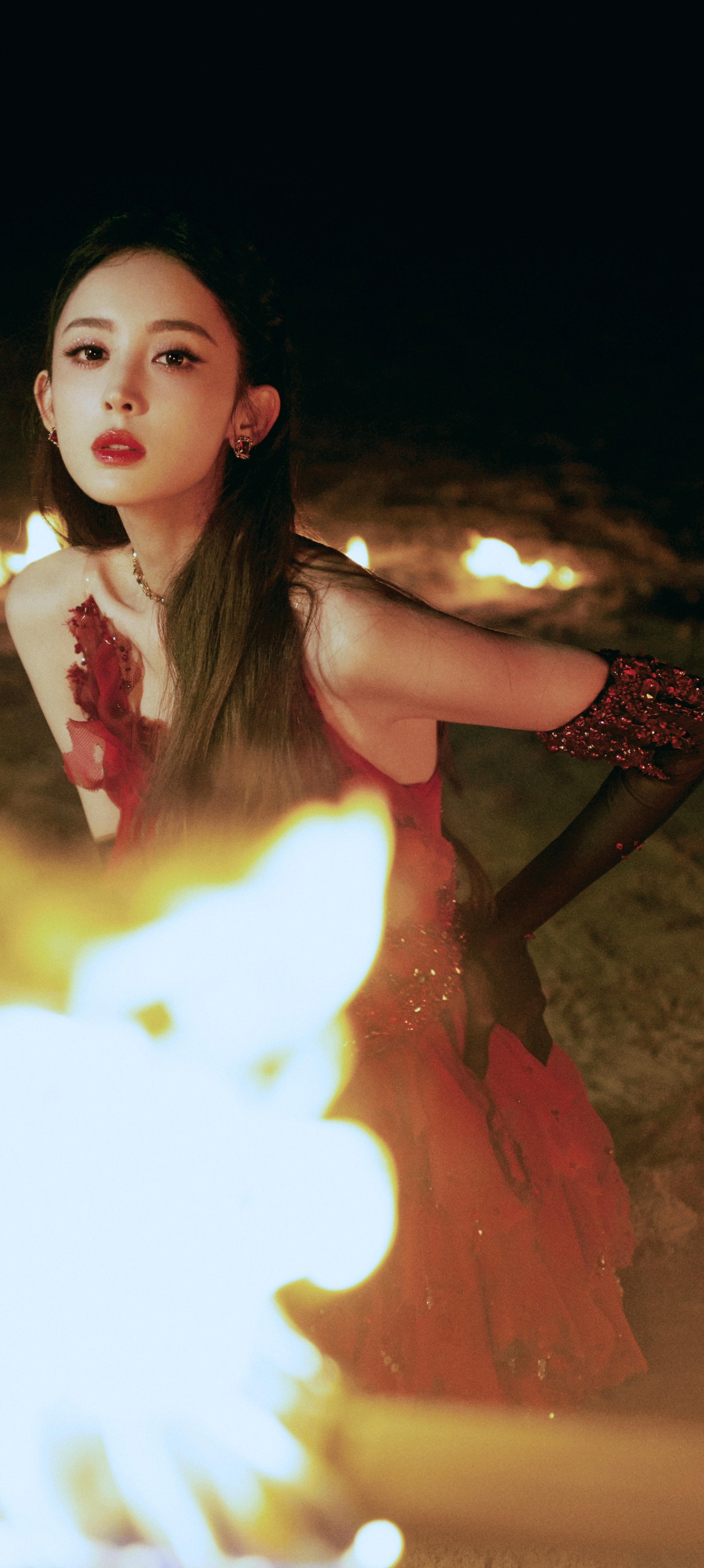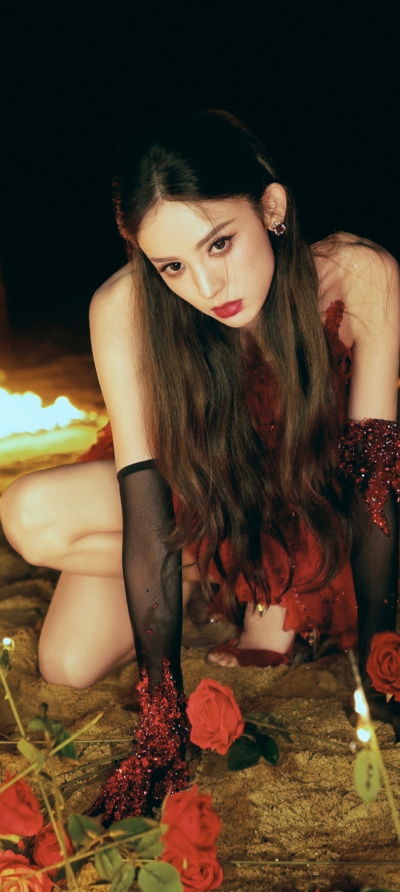 古力娜扎穿搭壁纸:红裙美腿,热烈的异域美人。娜扎