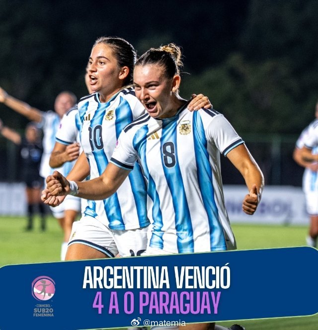 在南美U20女足锦标赛中,阿根廷🇦🇷以4-0大胜巴拉圭女队🇵🇾,安妮卡·帕斯、基希·努涅斯(梅开二度)和阿古斯蒂娜·马尔多纳多各入一球,继续保持着晋级U20女足世界杯的希望。