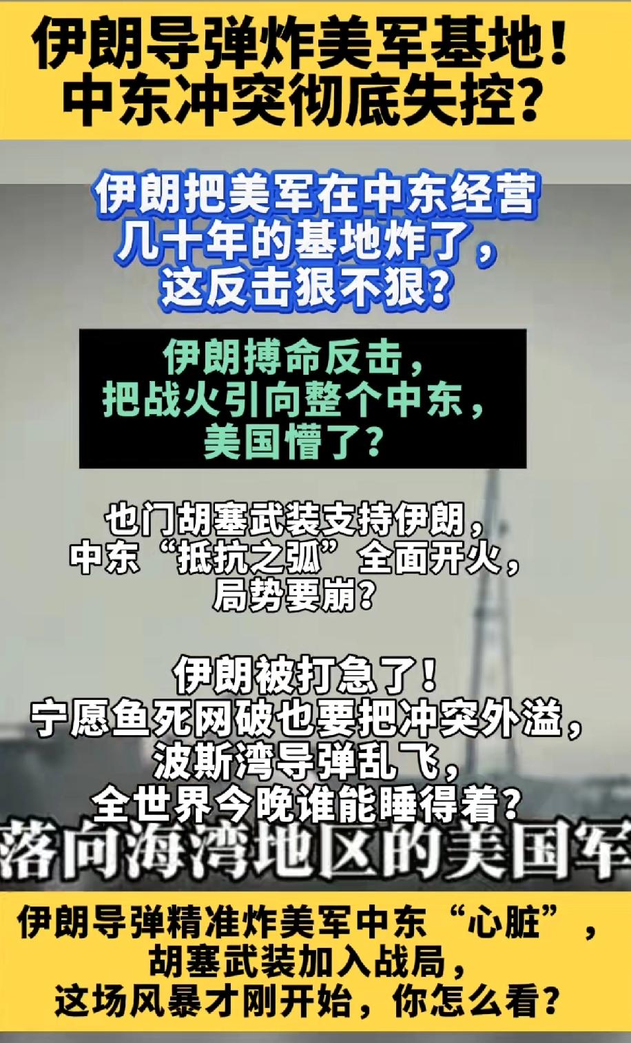 特朗普现在有点懵逼了,拜登和以色列给他挖了个大坑,凭什么拜登那时候随便炸伊朗,伊朗最多升个旗之类的,现在轮到特朗普上场,结果伊朗不升旗,直接上狠活,把老美的中东基地炸了个遍,虽然伤害不大,但这面子全炸没了,老美横行中东几十年,哪受过这种被挨个点名被炸,这节奏完全不对啊!这恐怕只有以色列才明白,去年他们帮伊朗清除了一帮军内软弱派,现在在位的全是随时准备打仗的主战派。